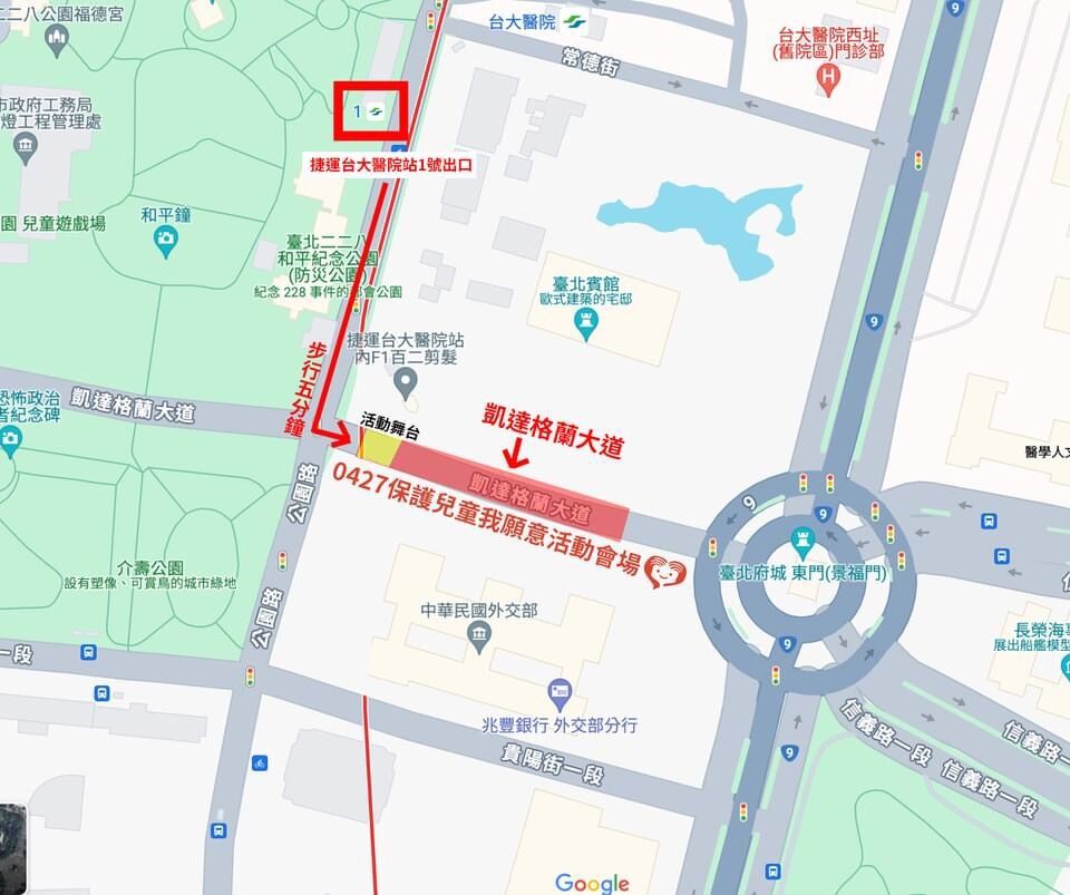 步行五分鐘到凱達格蘭大道