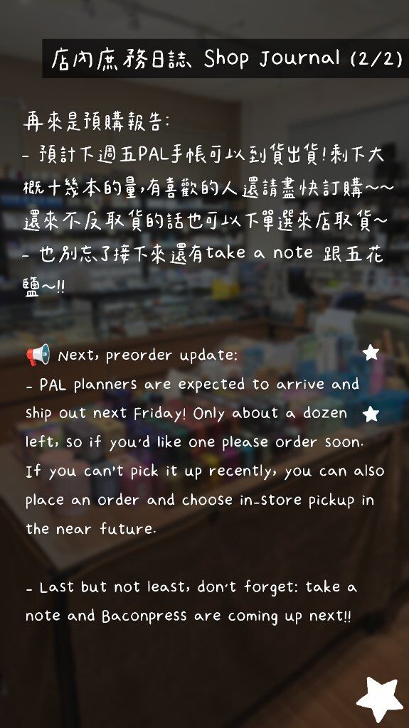 賈絲筆咧 🩷山多小地瓜 分享 Sep 28, 2025 02:44PM 首先恭喜賈絲筆咧昨天八歲生日快樂!!(河道其實有小蛋糕,但我跟噗友聊太開心完全忘記領)(莫名其妙不小心對到頻率😂😂😂😂預購報告:預計下週五PAL手帳可以到貨出貨!剩下大概十幾本的量,有喜歡的人還請盡快訂購~~ 還來不及取貨的話也可以下單選來店取貨~ 也別忘了接下來還有take a note 跟五花鹽~!!