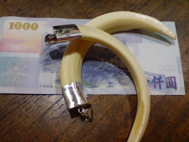牙大概從一半後面開始都是空心的了~跟象牙是一樣的~但是豬獠牙後面很薄~輕輕壓就會破碎~