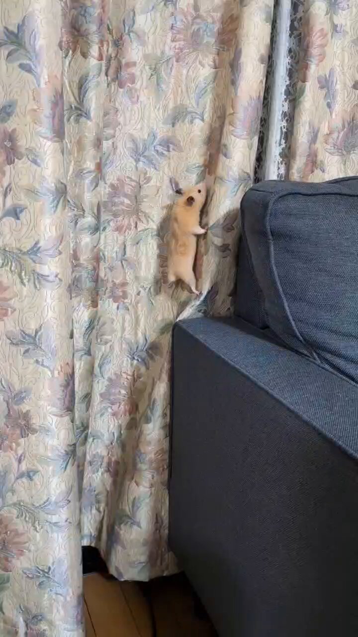 我要請這隻鼠鼠庇佑我能跟他一樣心無旁務的爬窗簾