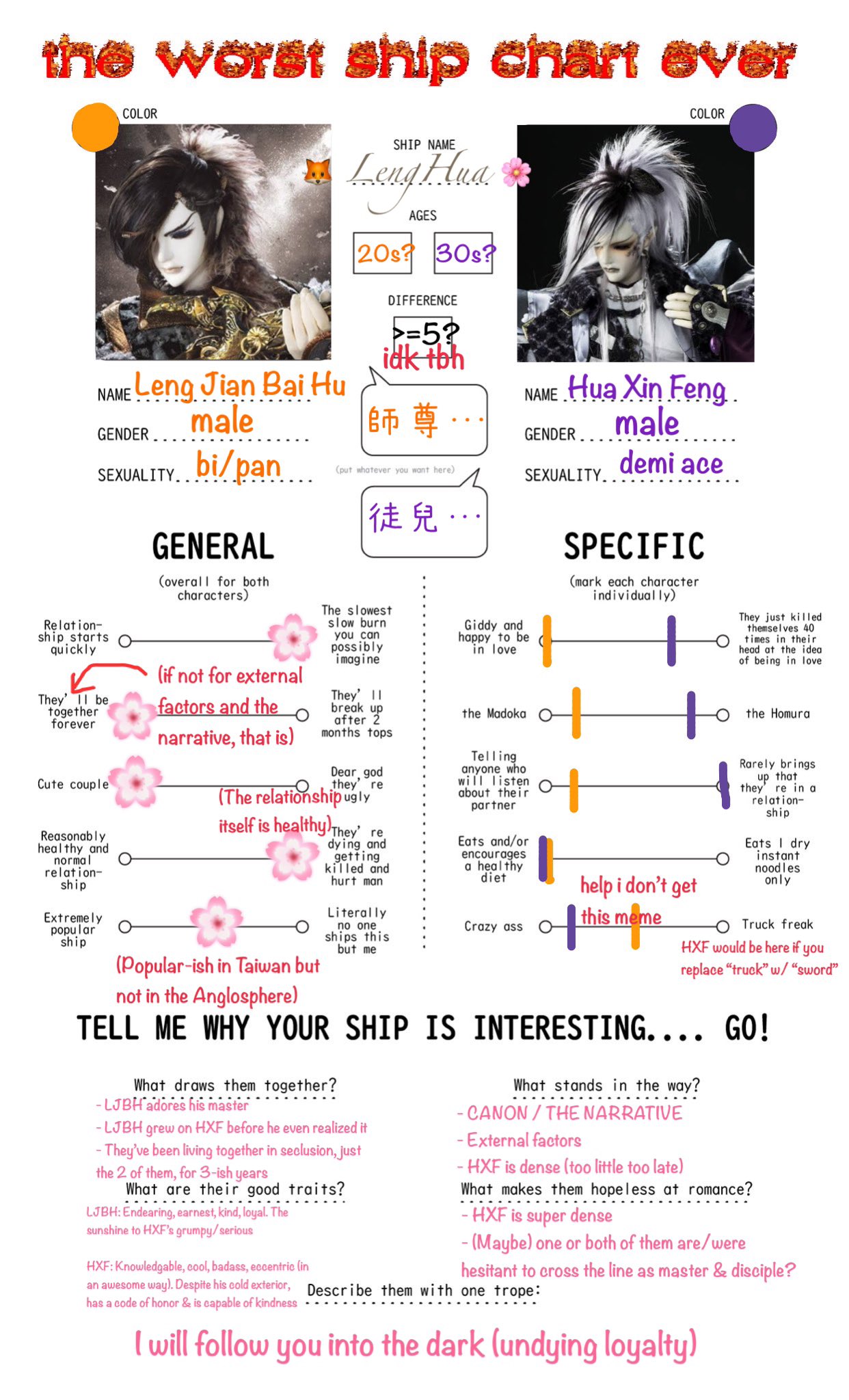 狐和初對花都很直白,不過這對比起來,狐真的很溫柔懂事(?)雖然暗地一直行事,但不會頂嘴花;而初則會小小撒氣、皮皮的像孩子不成熟的孩子向花撒嬌
