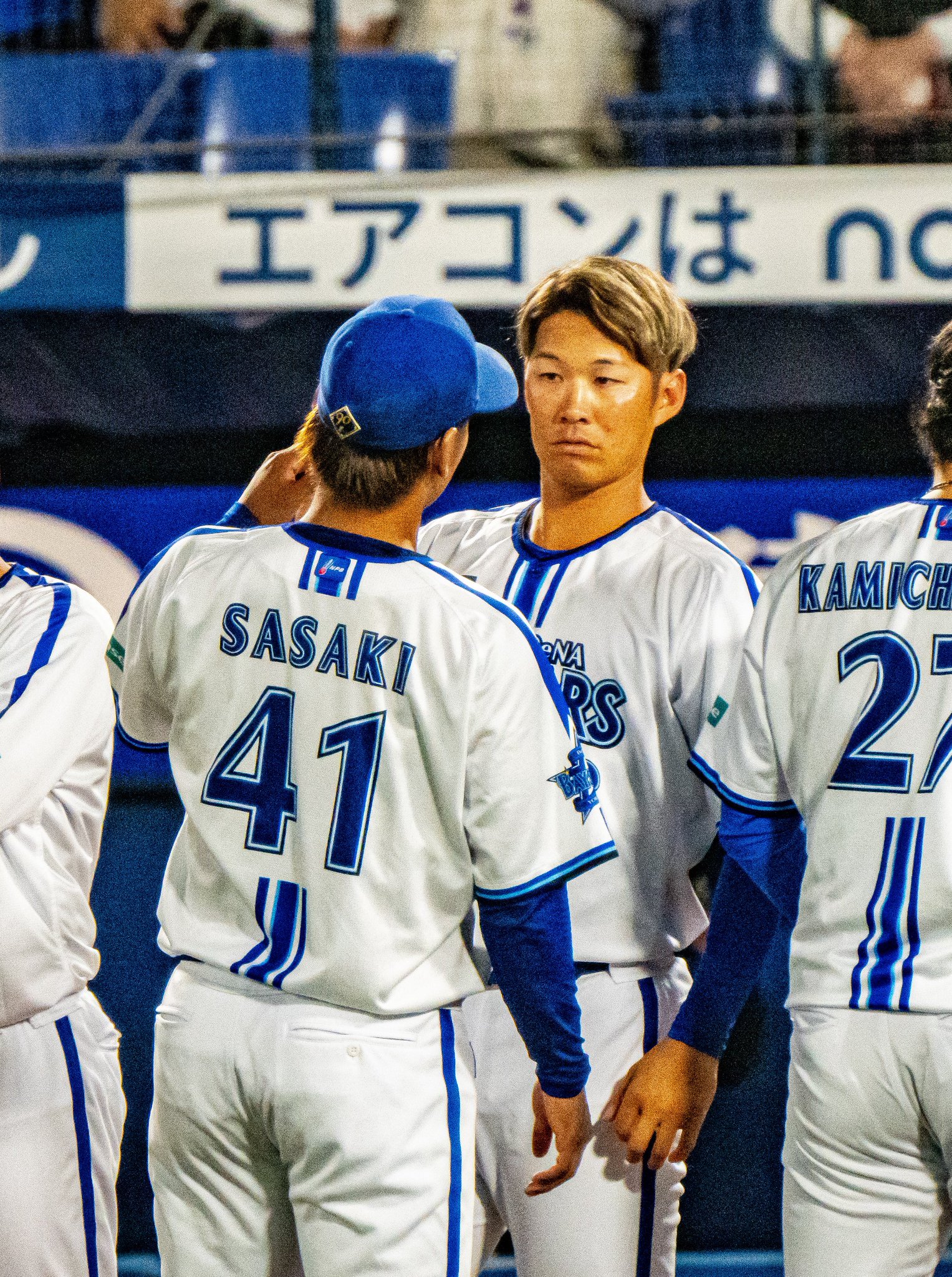 在抱抱之前度會的慶祝都很控えめ,在跑壘的時候也是舉一下手馬上放下,都沒有笑,回去ハイタッチ也都沒有歡呼沒有笑,京田さん給他抱抱之後才像以前那樣笑了,這是什麼良心職場...