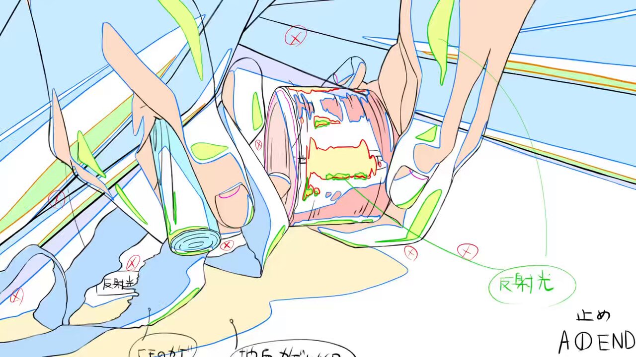 這個...這個纏繞帶子的作畫.....真的很扯.......手握住東西的實感,出力的方向和力道,帶子被拉扯的模樣,怎麼能這麼完整的呈現出來........你叫我錄影描圖我也畫不出來.............
