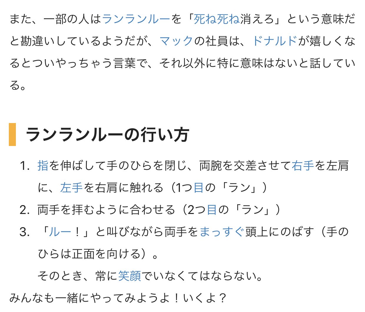 「そのせいでドナルドがCMでランランルーが使えないなんてことになってたら、とんでもないドナルドいじめだわ。」
