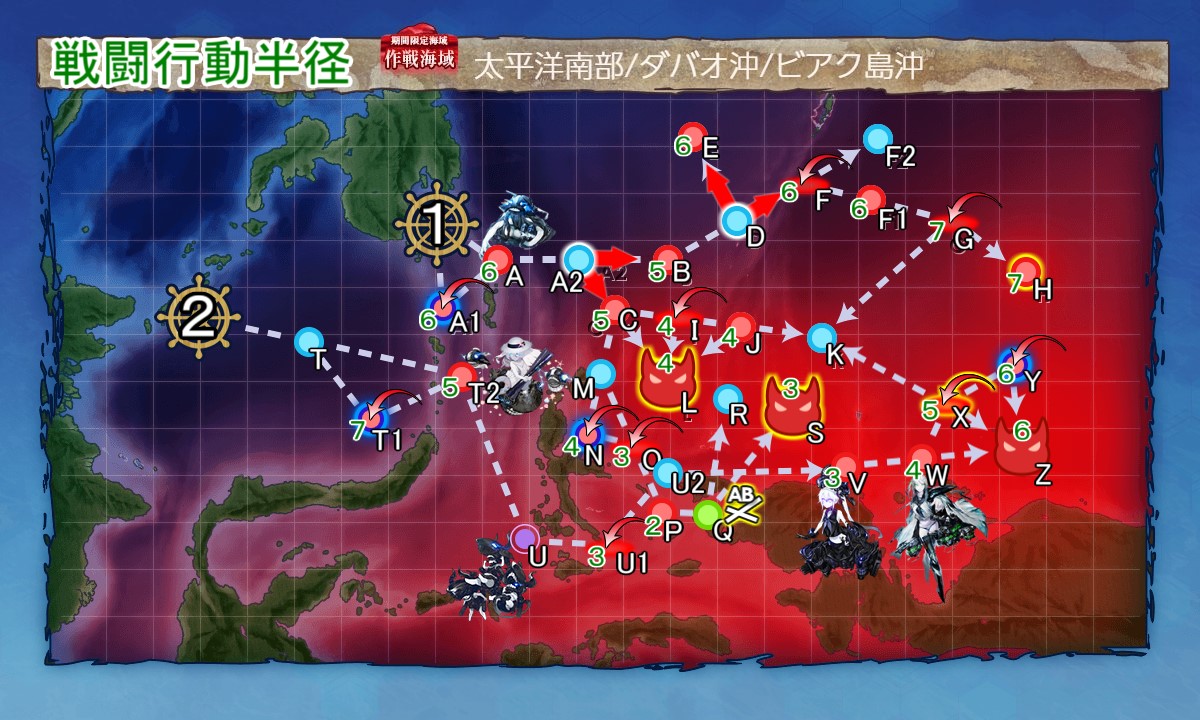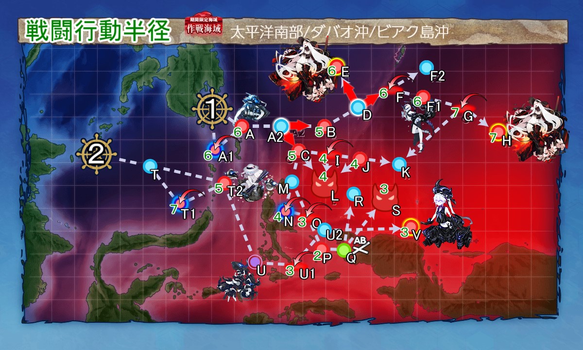 ※E4-2突破後,基地位置移動,向各戰鬥點出擊所需的航空半徑變更