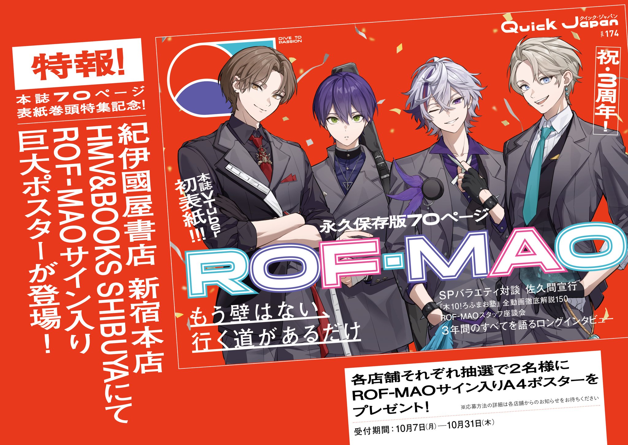 『クイック・ジャパンvol.174』発売記念【ROF-MAO】直筆サイン入りポスター掲示&プレゼントキャ...喔他線上買也可以抽欸,心動度突然大幅提高(?