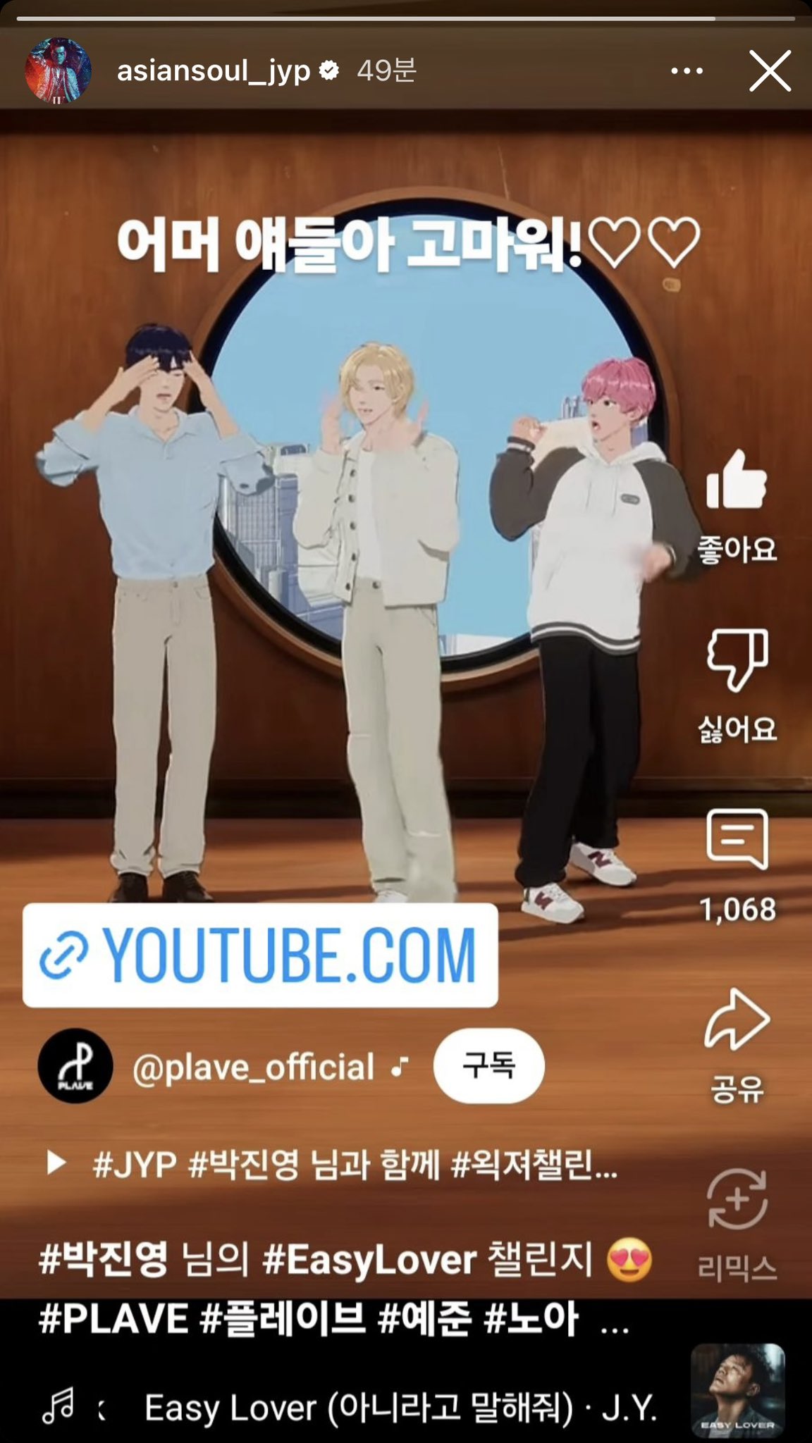 함니머리위새싹거주중 (@haminleaf) on X啊啊啊啊EASY LOVER CHA下面的留言&IG提及,謝謝JYP大前輩🤣