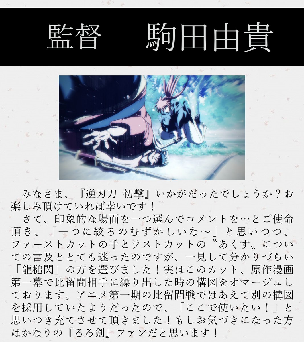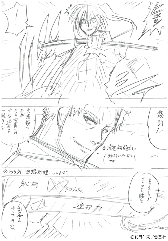 TVアニメ「るろうに剣心 -明治剣客浪漫譚-... on X第34話は、連載25周年記念「るろうに剣心展」で披露された原作者 #和月伸宏 によるネームが基になっています。