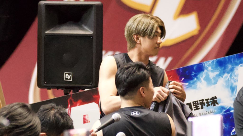 古林睿煬(グーリン・ルェヤン)選手がエスコンフィールドに見参!古林穿上火腿的球衣也太沒違和感了吧...