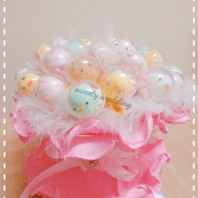 小雞造型組成的棉花糖小花束