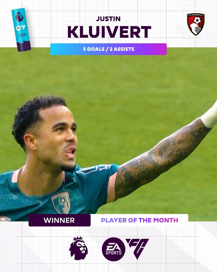 Premier League (@premierleague) on XLast weekend's hat-trick hero Justin Kluivert opens the scoring for Bournemouth! ⭐️