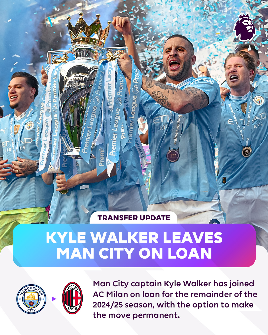 Premier League (@premierleague) on XSix-time Premier League champion Kyle Walker has left Man City to join AC Milan for the rest of the season