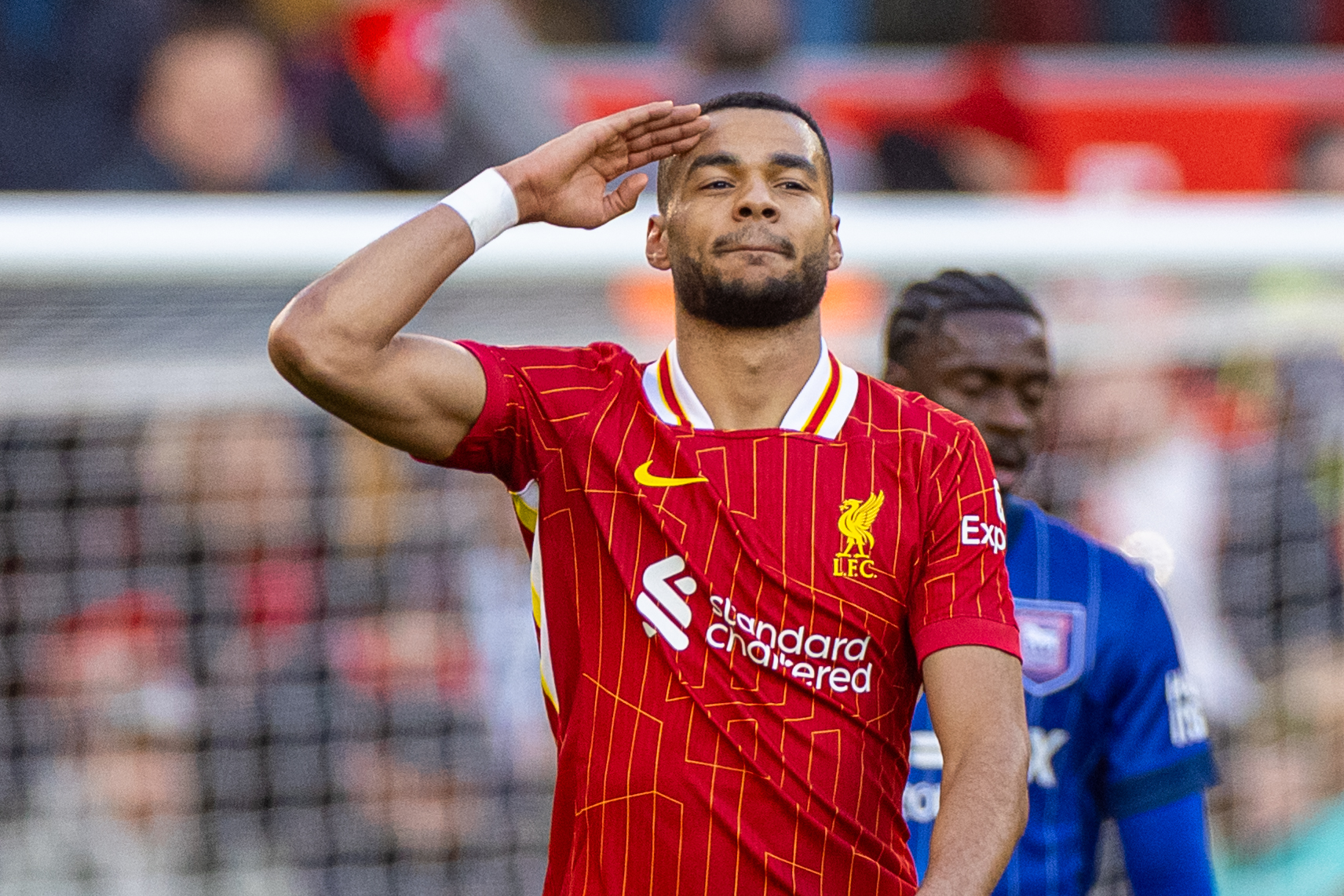 Paul Gorst (@ptgorst) on XSzoboszlai's effort is saved into the path of Gakpo, who turns home from close range. Liverpool 3-0 Ipswich.