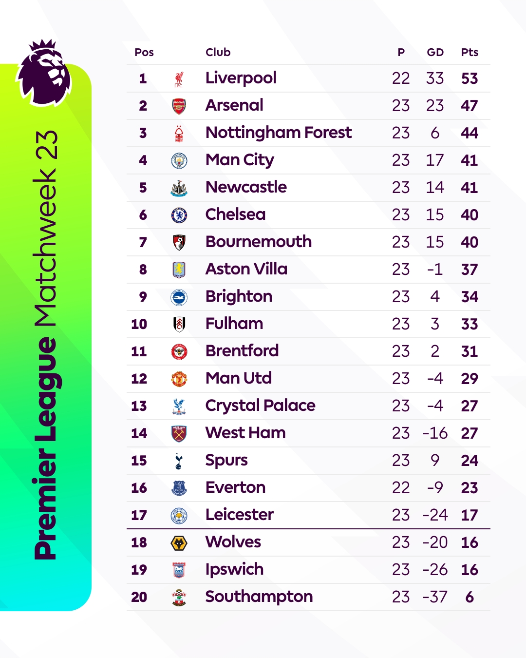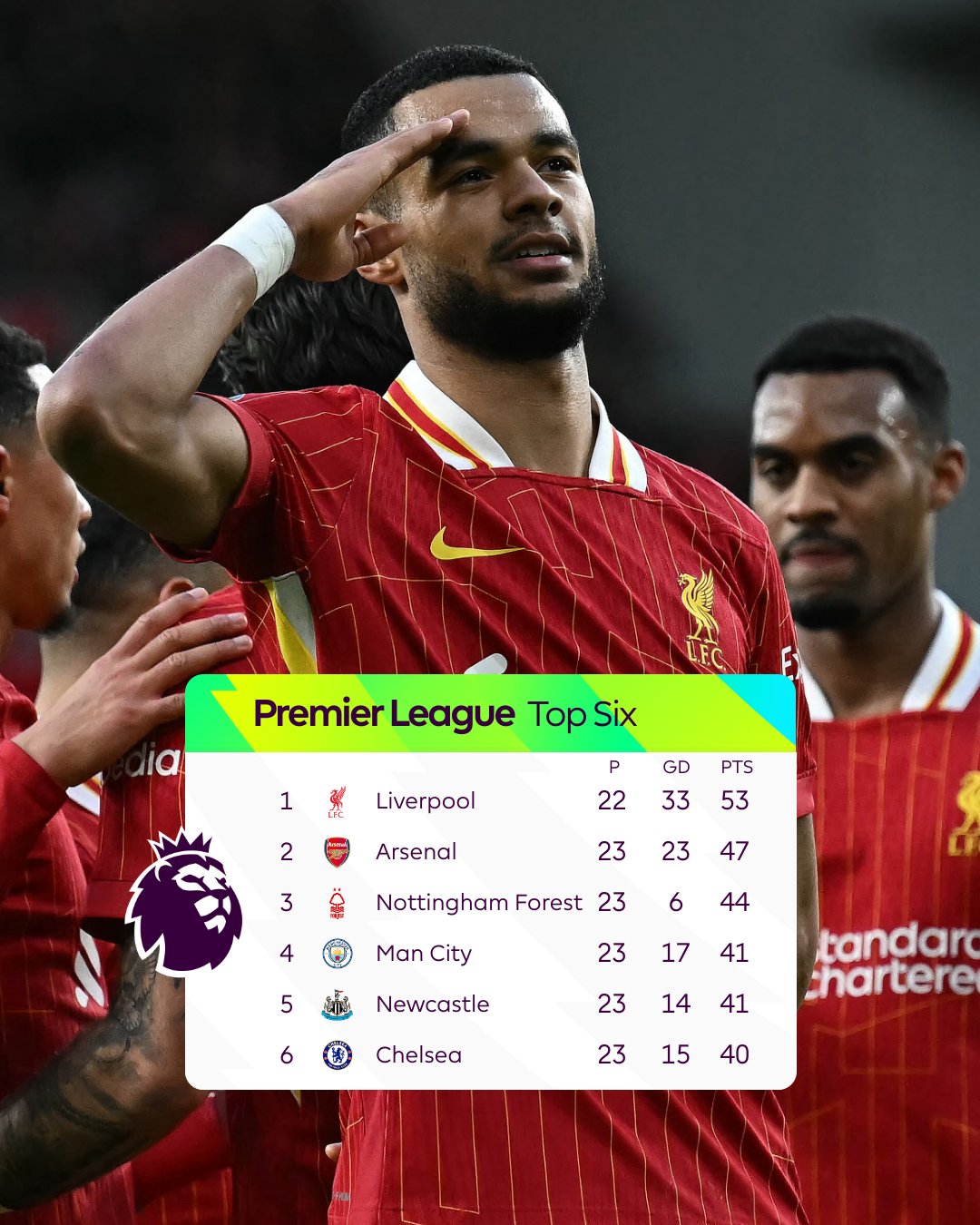Premier League (@premierleague) on XThe top six looks like this thanks to wins for Liverpool, Arsenal, Man City and Newcastle ✅