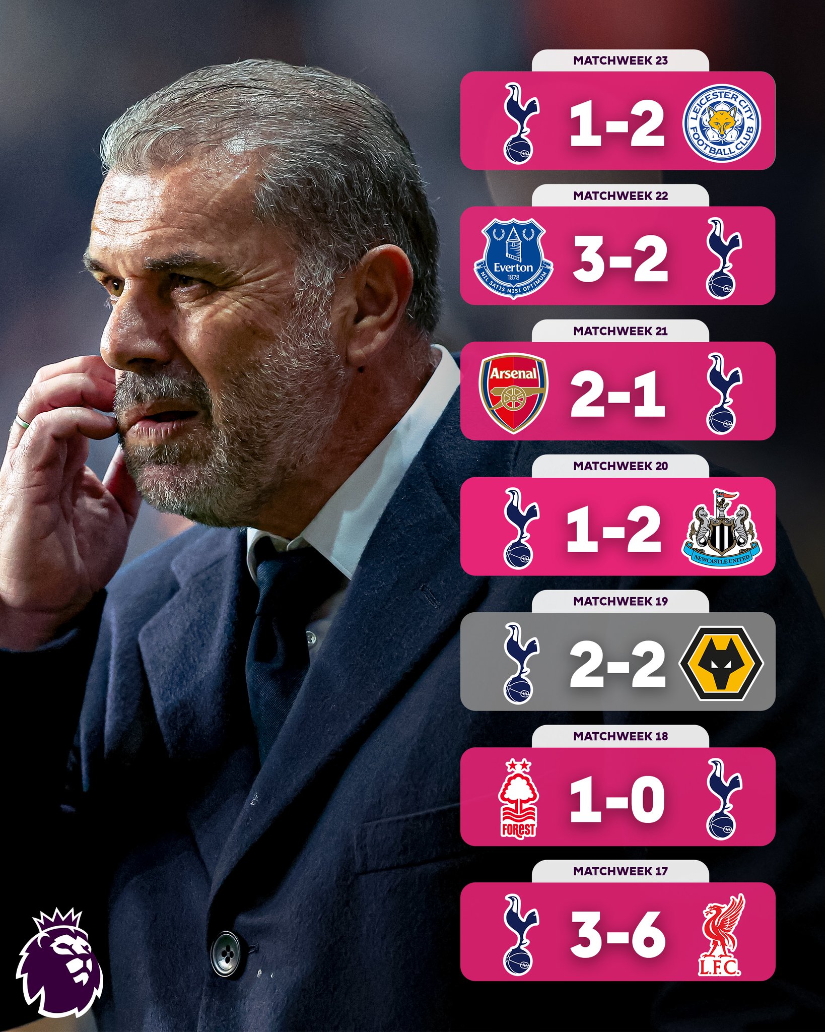 Premier League (@premierleague) on XSpurs' latest loss extends their winless league run to seven matches. Here is a look at the fixtures they have coming up next
