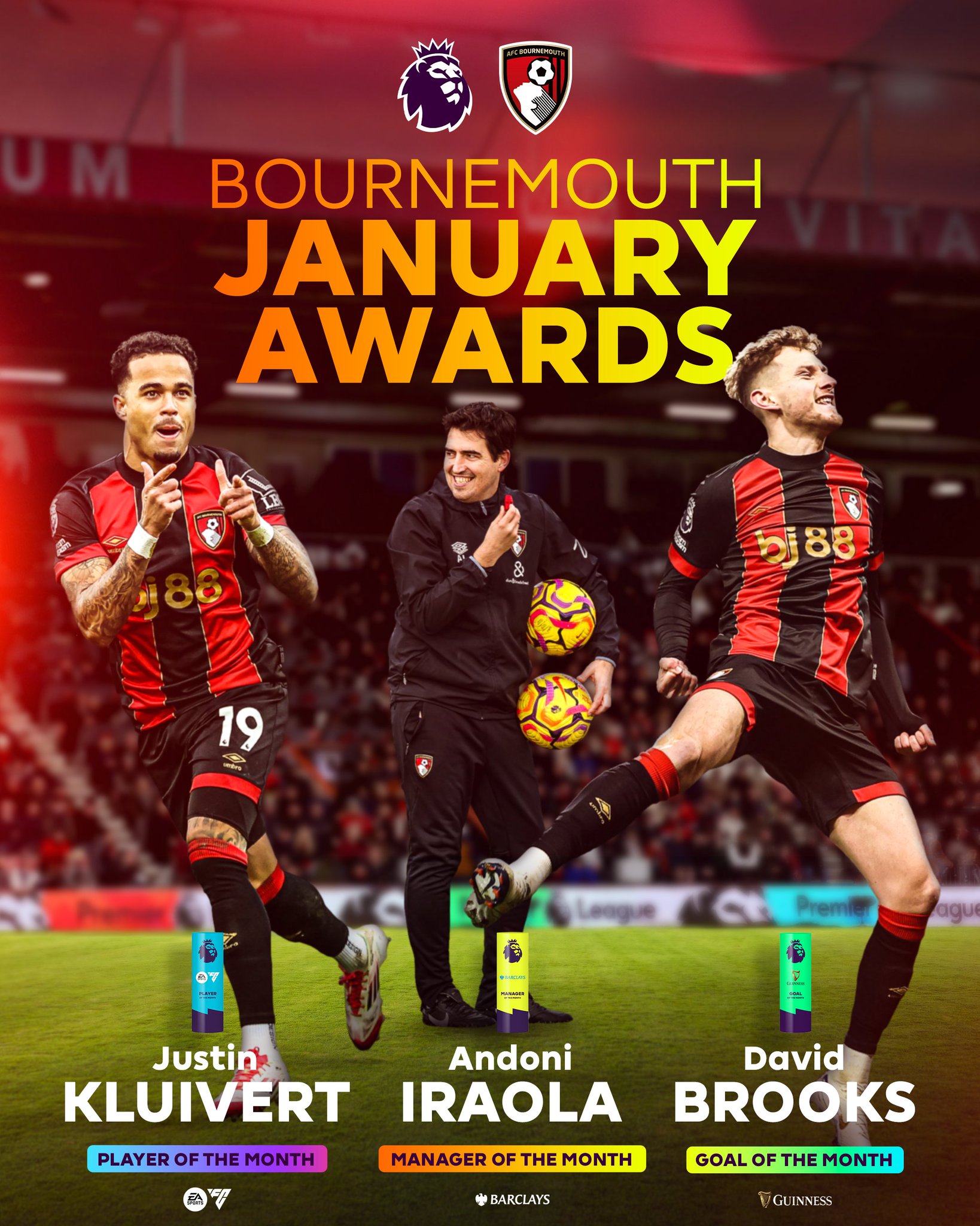 Premier League (@premierleague) on XJust the THREE Premier League awards for afcbournemouth in January 🏆🏆🏆