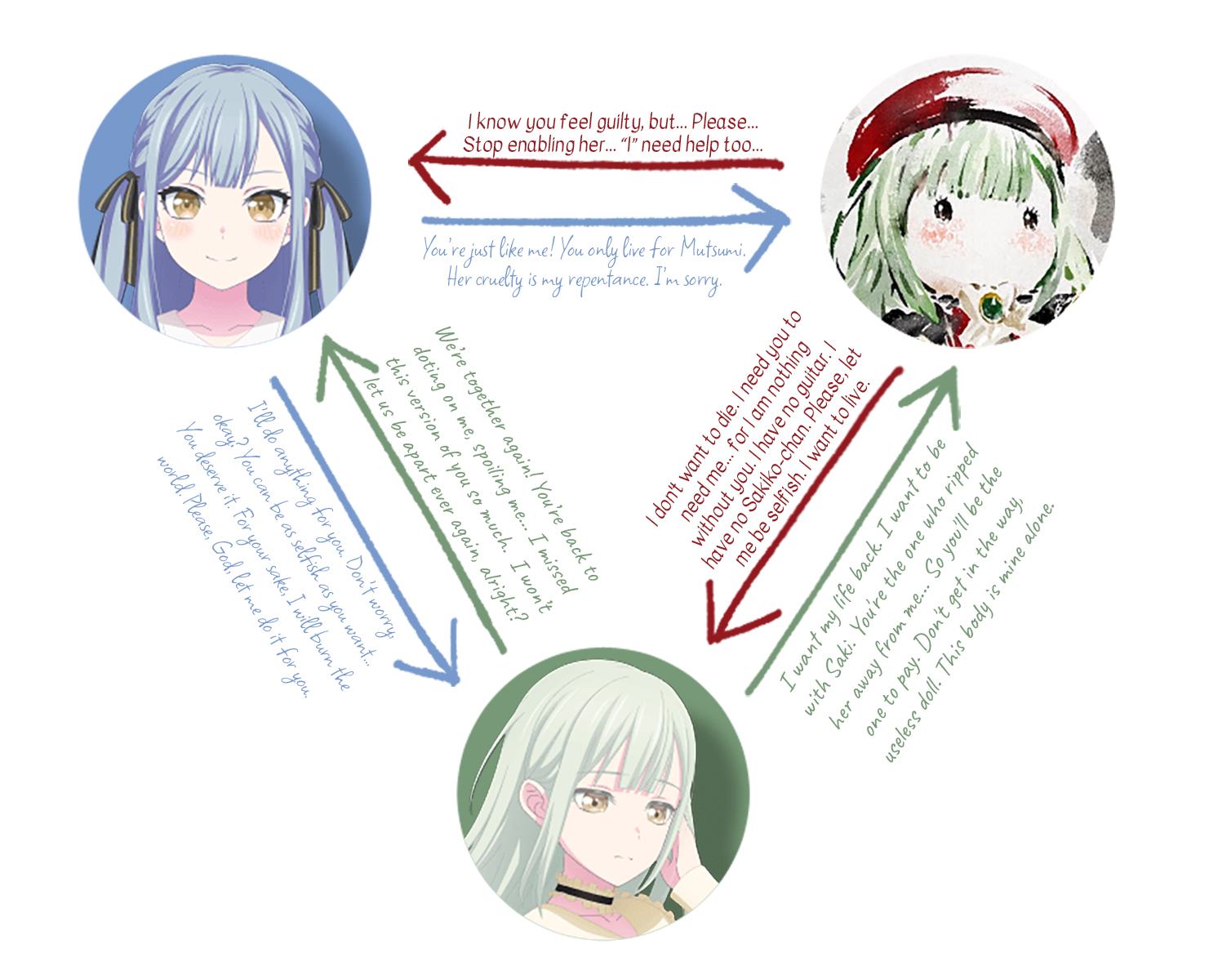 mo想維持睦很重視的母雞卡,但睦重視母雞卡是因為小祥很重視,mo討厭曾傷害睦ちゃん的小祥,傷害了小祥卻等於傷害了愛小祥的睦ちゃん