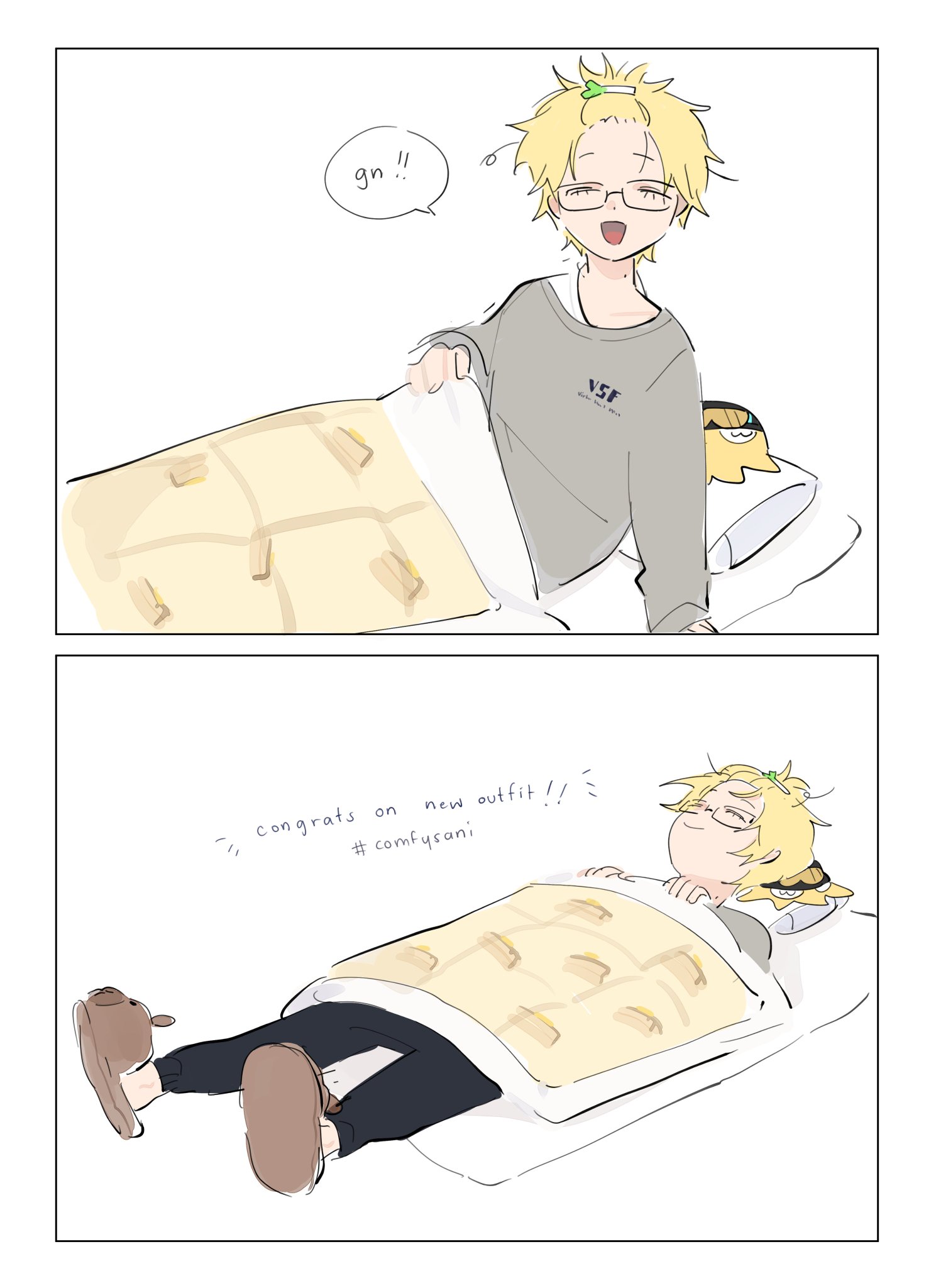 Kise0604: 感受到繪師努力了,我個人覺得有點可惜是穿這套卻不是寢室情境(也理解亮色比較難表現,也有給他鬆軟鬆餅了🥞),不過還是蠻期待他的自作語音劇情的✨