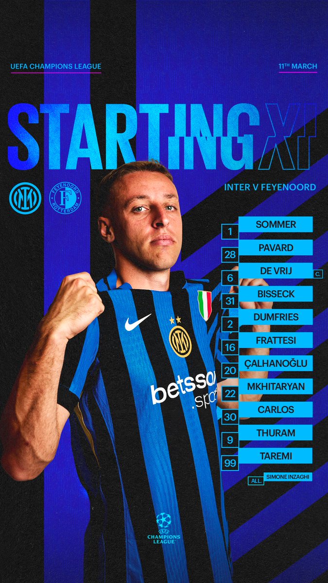 Inter ⭐⭐ (@Inter_en) on XSubstitutes: 12 Di Gennaro, 13 J. Martinez, 8 Arnautovic, 10 Lautaro, 15 Acerbi, 21 Asllani, 23 Barella, 50 Aidoo, 52 Berenbruch, 58 Cocchi, 95 Bastoni.