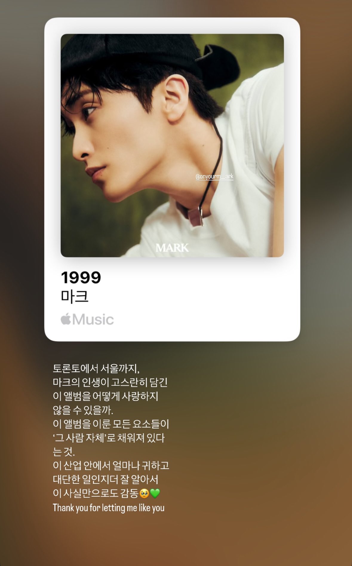 喜歡的站長在個人帳號裡說馬克從來沒把粉絲喜歡他視為理所當然的事,這點特別感謝...真的是...