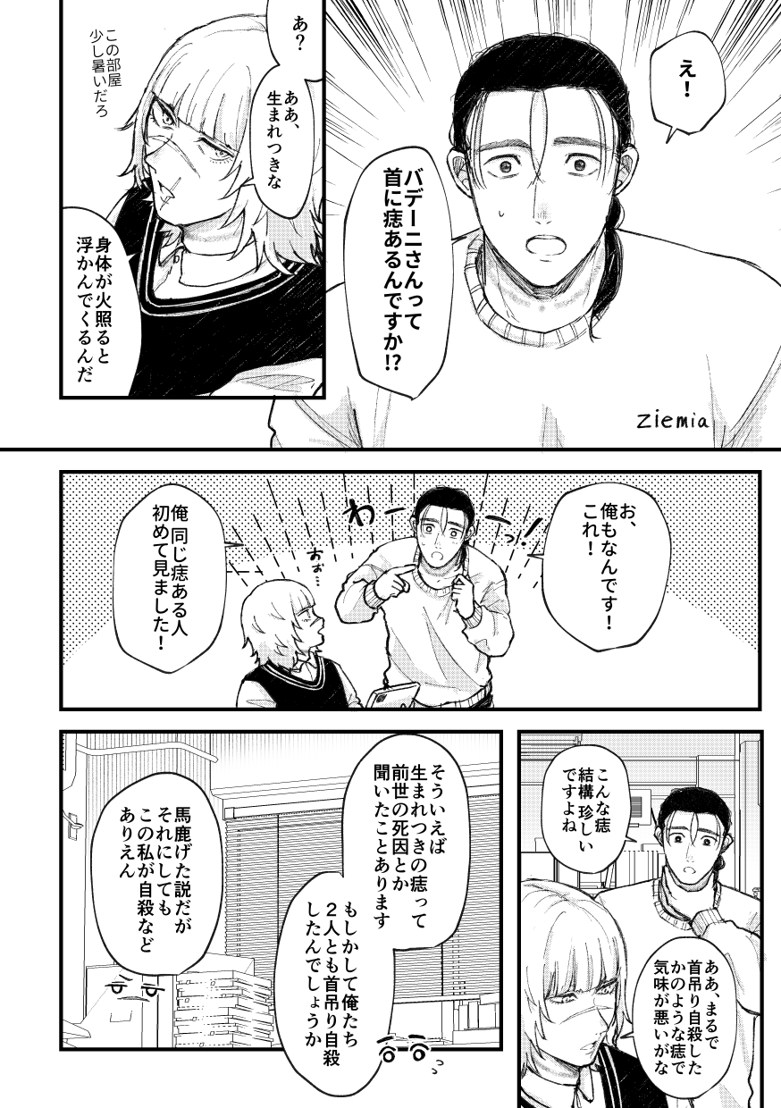 :原來如此,巴德尼同學一如既往知道好多。不過以前的絞刑只是聽著就覺得脖子痛起來了呢……現在的人已經不需要受那時的苦真是太好了。(⬅️這是純粹的對好友的知識含量感到佩服,用豐沛的感受力發表感言的奧克茲同學)