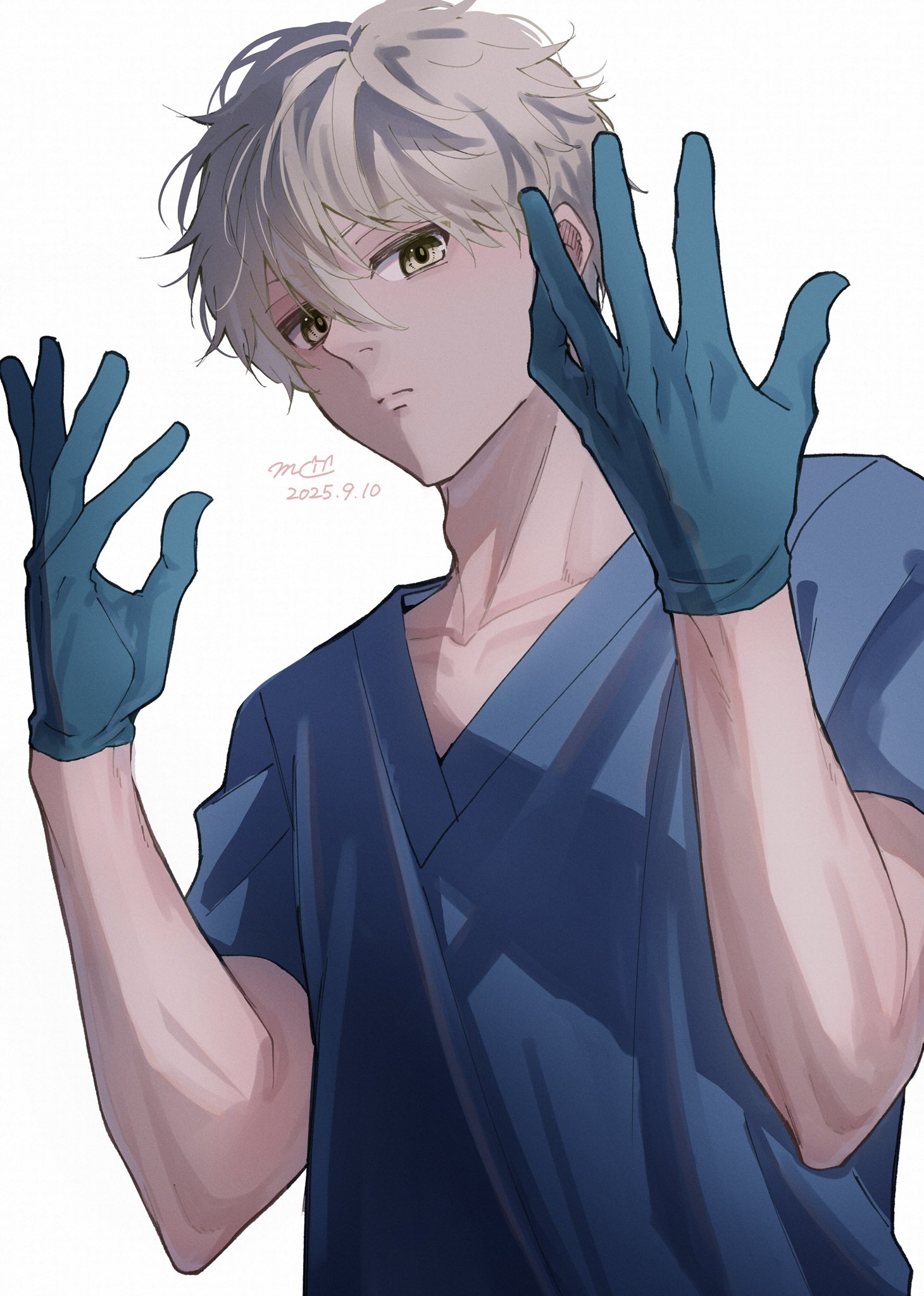 這種稍微繃緊的感覺反而有種禁慾的澀感 更想給他撥開 更別說上身與盤腿的姿勢都是一種敞開式的體態 卻在細微的地方刻意地收斂