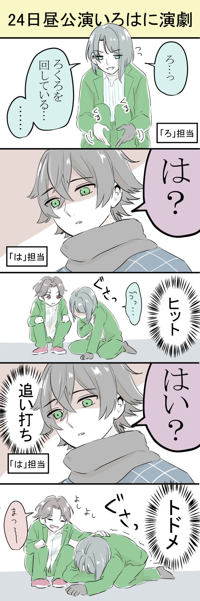 MC主題是鬼屋,要用いろは頭文字造句講台詞,整個有夠長www大典太設定是去鬼屋面試的人,然後他的台詞就一直圍繞到底要不要面試XDD(其他人已經不知道身處哪個宇宙了)