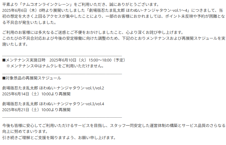 「ナムコ オンラインクレーン」公式アカウント (@namco_oc) on X