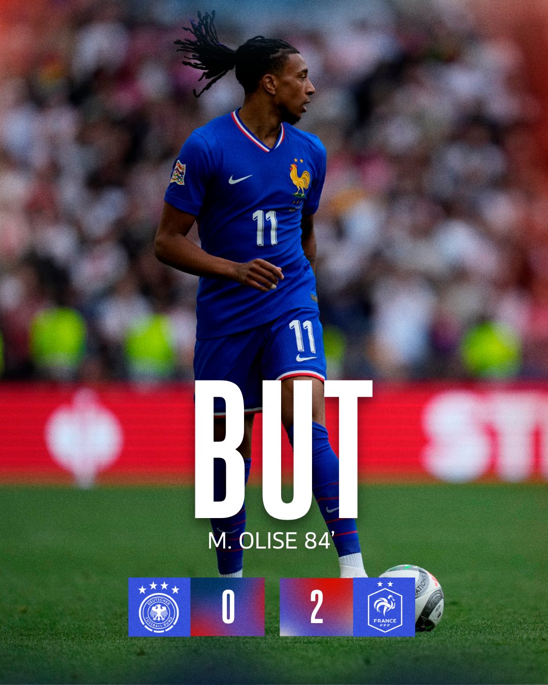 Equipe de France ⭐⭐ (@equipedefrance) on XOuiiiiii, Olise double le score sur un caviar de Mbappé !!