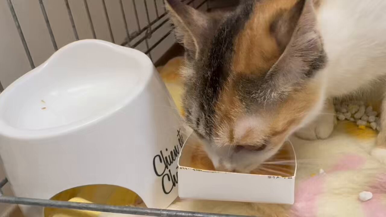 三花猫说是刚刚生育完有点虚弱,需要再等等看。
