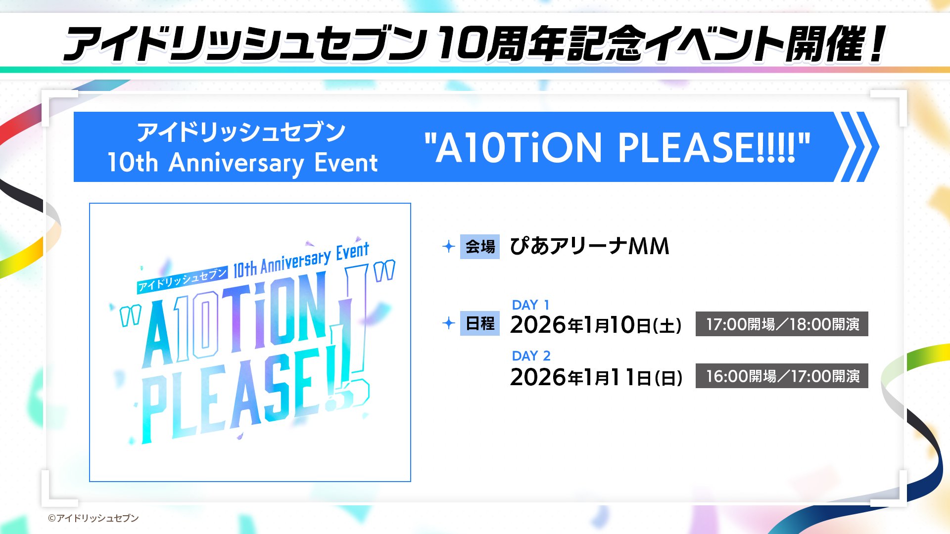 アイドリッシュセブン10周年記念『10周年記念生放送!NATSUだ!10周年だ!アイナナ☆しようぜ!』10周年直播!!!JST21~22(又要等看回放w)