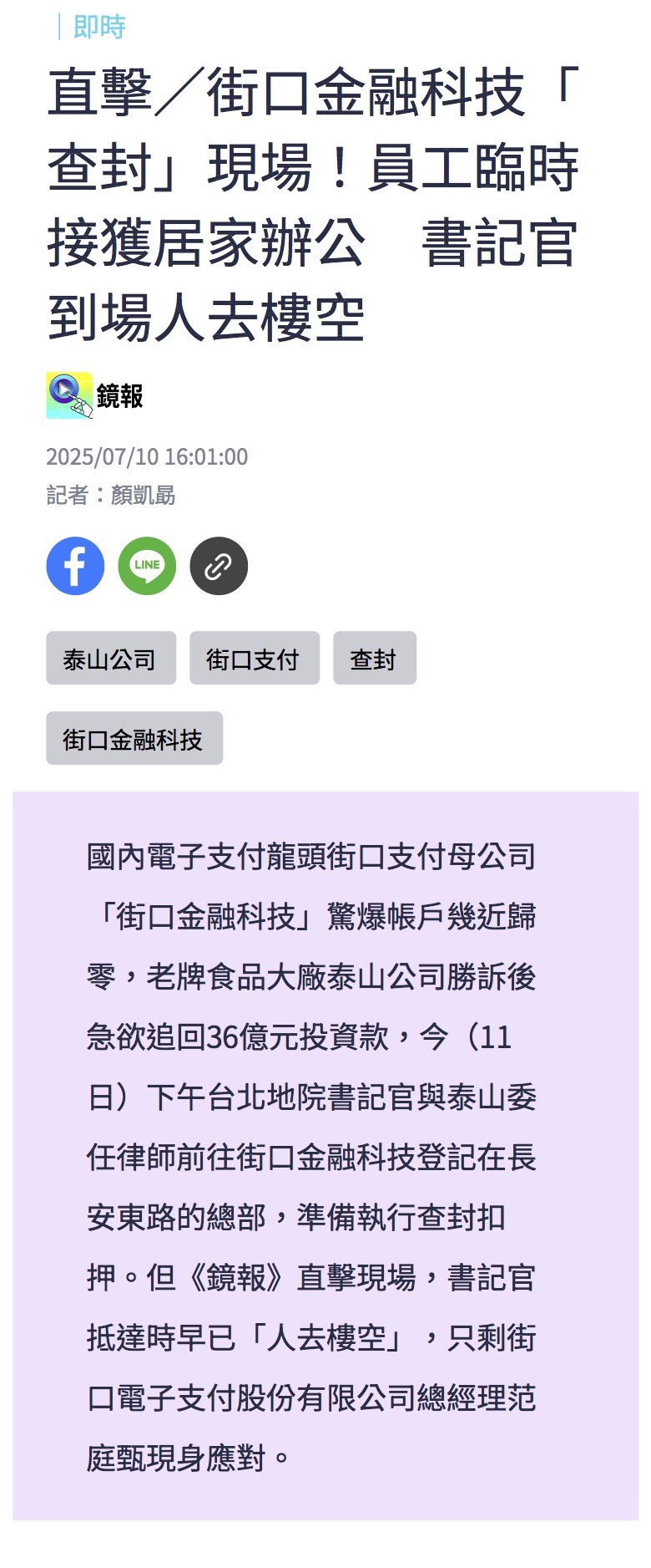 直擊/街口金融科技「查封」現場!員工臨時接獲居家辦公 書記官到場人去樓空 - 鏡報
