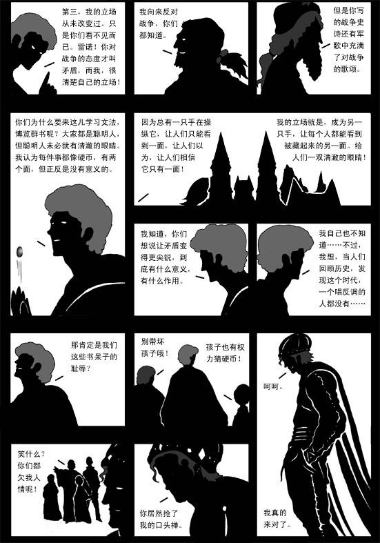 「我想,當人們回顧歷史,發現這個時代,一個唱反調的人都沒有……那肯定是我們這些書呆子的恥辱? 」<【塔希里亞故事集】42《審判》>