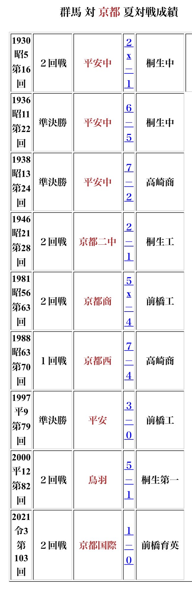 たけたけ (@taketake1w) on X群馬勢竟然從來沒打贏過京都勢