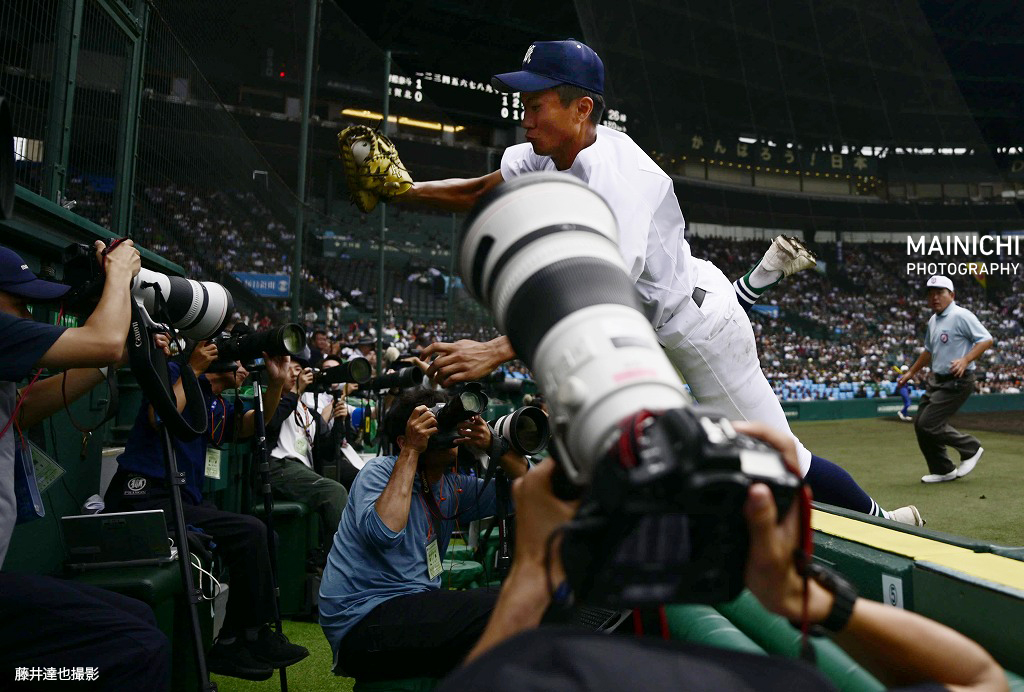 佐賀北的一壘手主將NP接殺界外球,整個人翻進攝影區XD