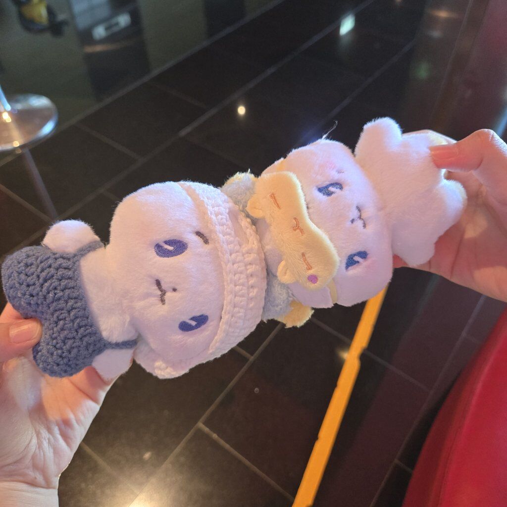 另外圖二的小包包配件是朋友抽的 我自己也幫他抽到推角moi的睡覺眼罩 互相歐的日子