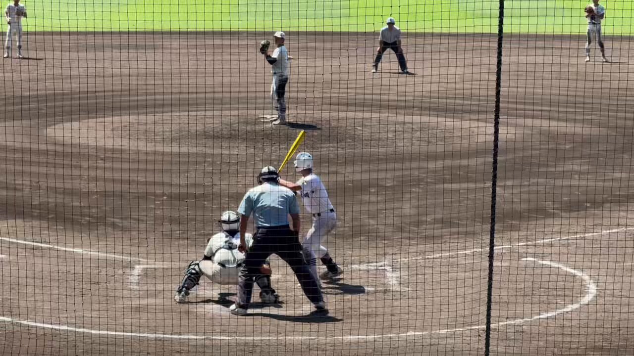 一出一二壘輪到縣岐阜商中心打線!壘上兩人都是四死球送上去的😂