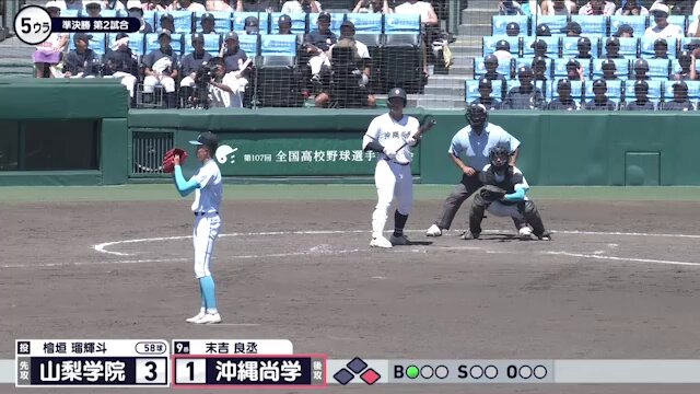 沖繩尚學5:4山梨學院,比賽進到八局下!!沖繩尚學能不能追加保險分!!