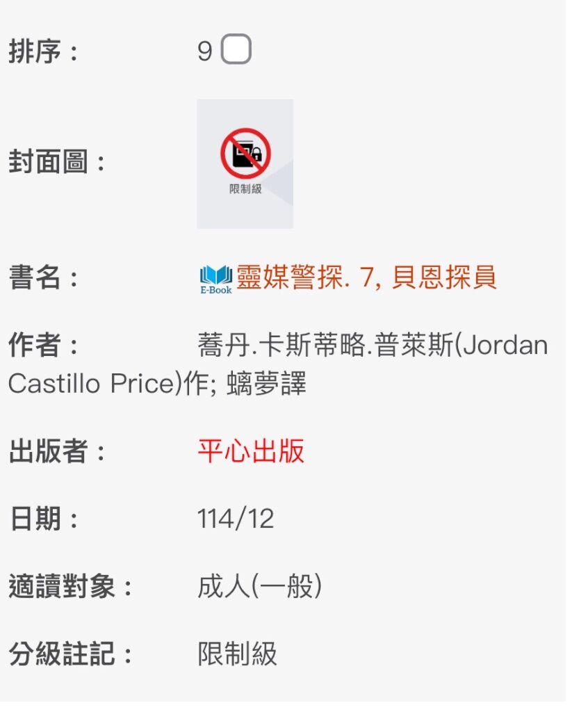: 當時的ISBN是申請到第幾集啊?如果還有應該是只有電子書,至少不會不出