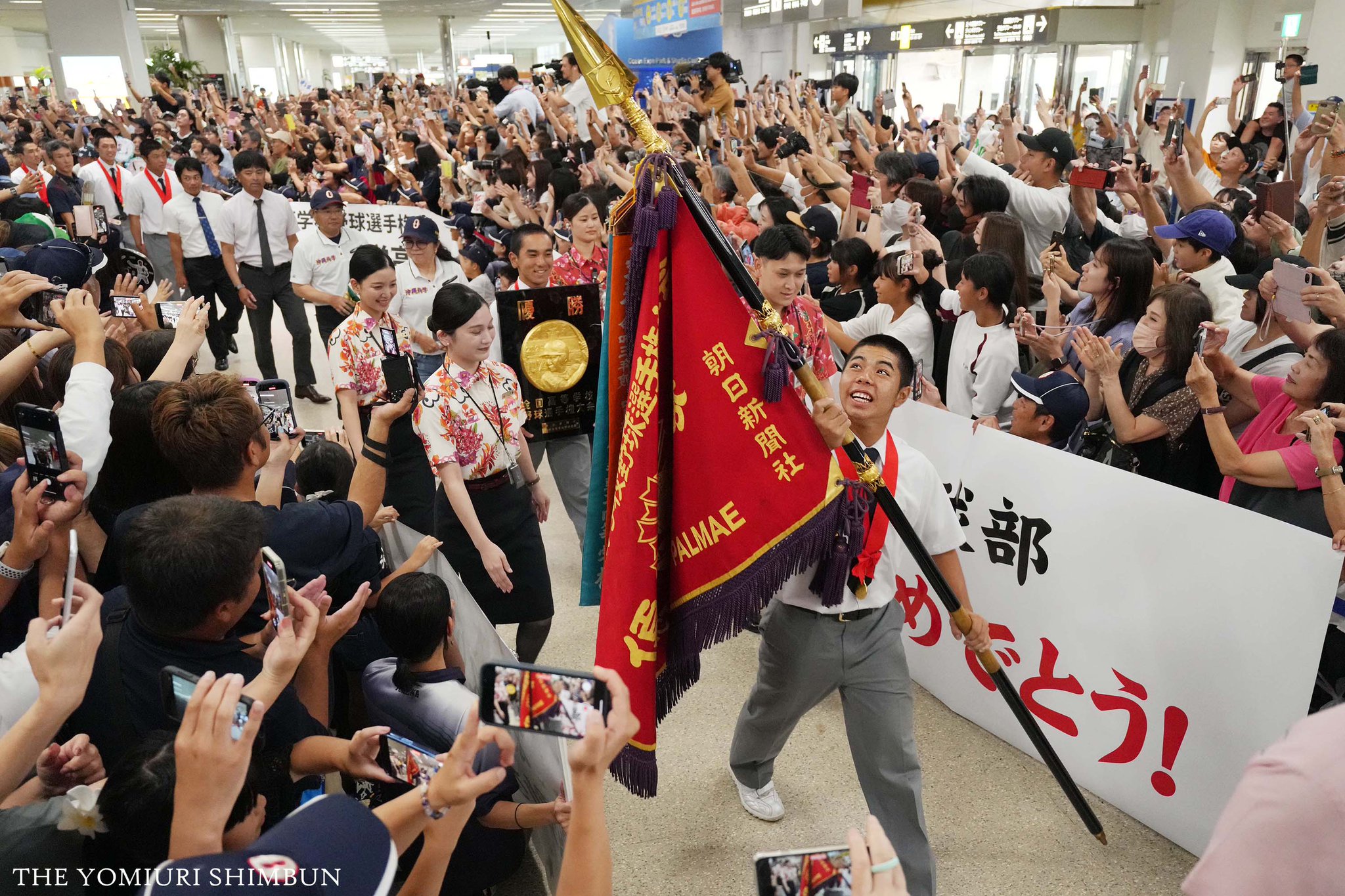 沖縄県勢初優勝 報道首次夏甲優勝的沖繩尚學回到沖繩的新聞,好好休息~
