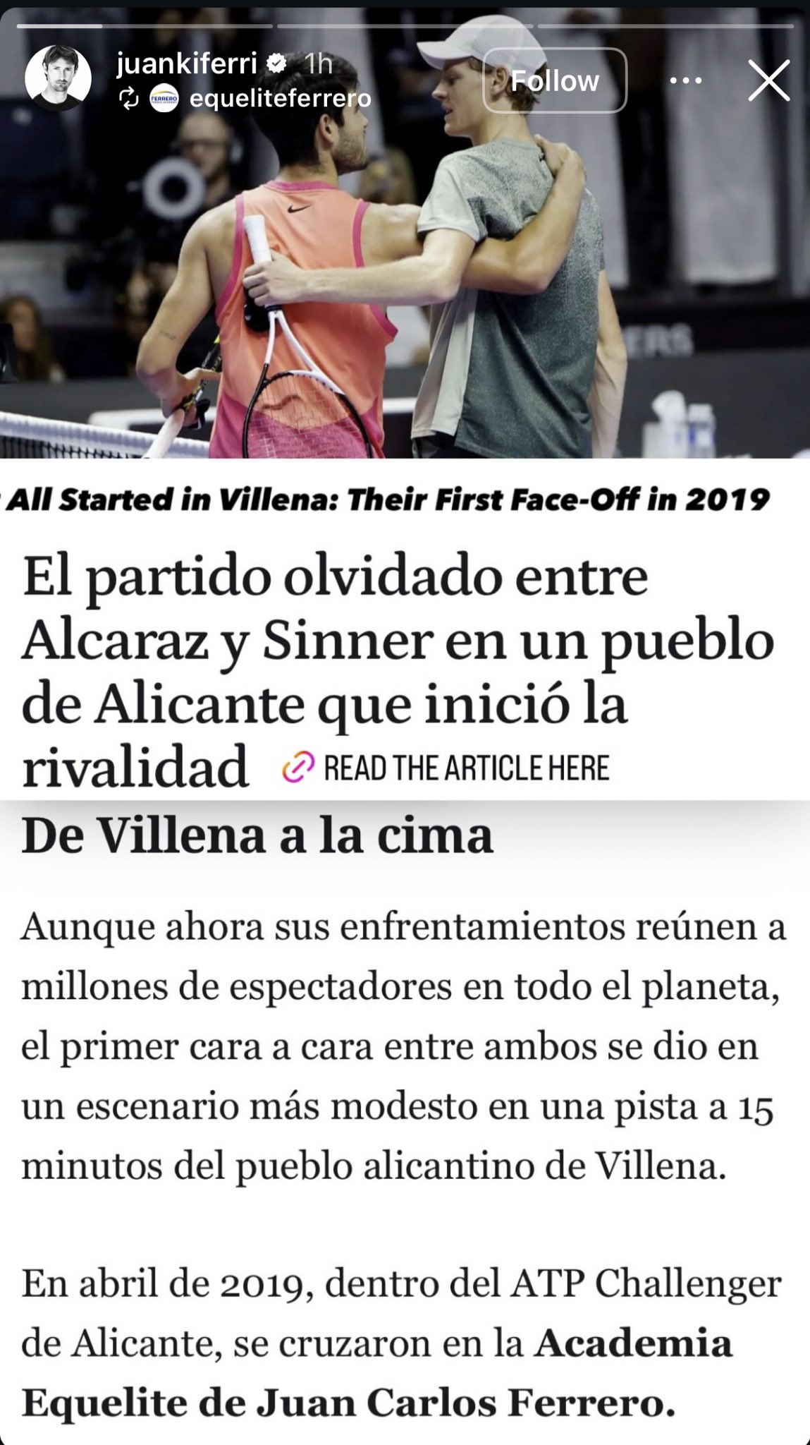 El partido olvidado entre Alcaraz y Sinner en un pue...六年前Ferrero網球學校舉辦的小比賽讓兩人的命運交會,Juanki一眼看中Sinner和阿卡將會稱霸網壇,繁忙的賽程中還不忘關切媒體對於兩人rivalry的刻畫,睿智的同人女說:Ferrero is the captain of this ship!