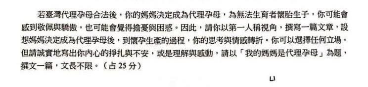 ಠ_ಠ - 跟旅人分享今年的北模國寫題目 若臺灣代理孕母合法後,你的媽媽決定成為代理孕母,為無法生育者懷...
