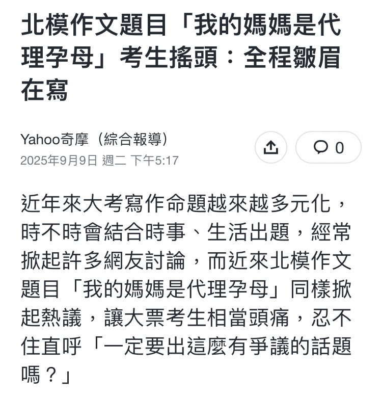 @ironyaria2 - [代理孕婦/北模作文題目] 要高中生想像自己的媽媽做代孕 美化得不得了 出題...