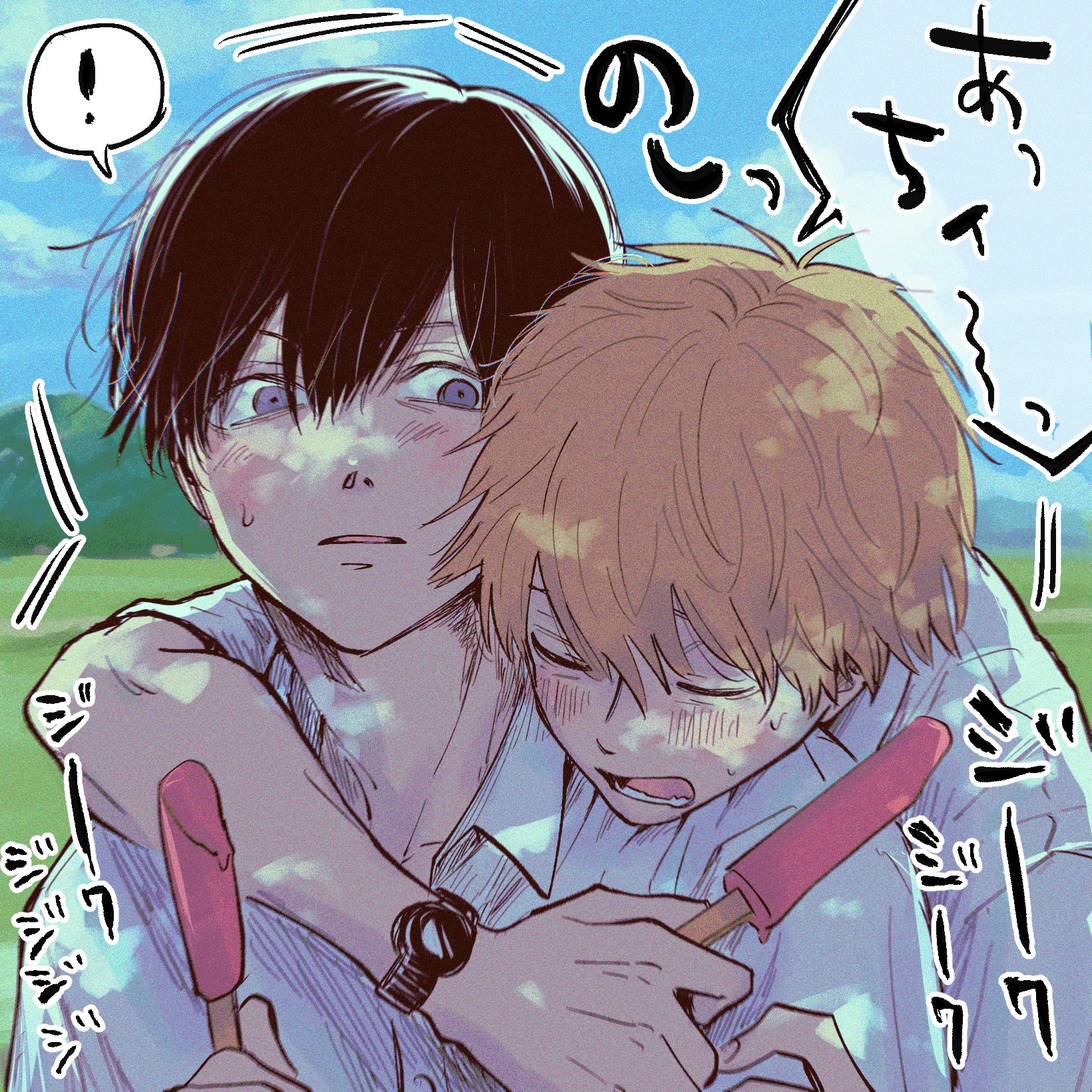 デンジ跟パワーちゃん一起睡真的是小動物貼貼⋯⋯好可愛⋯⋯