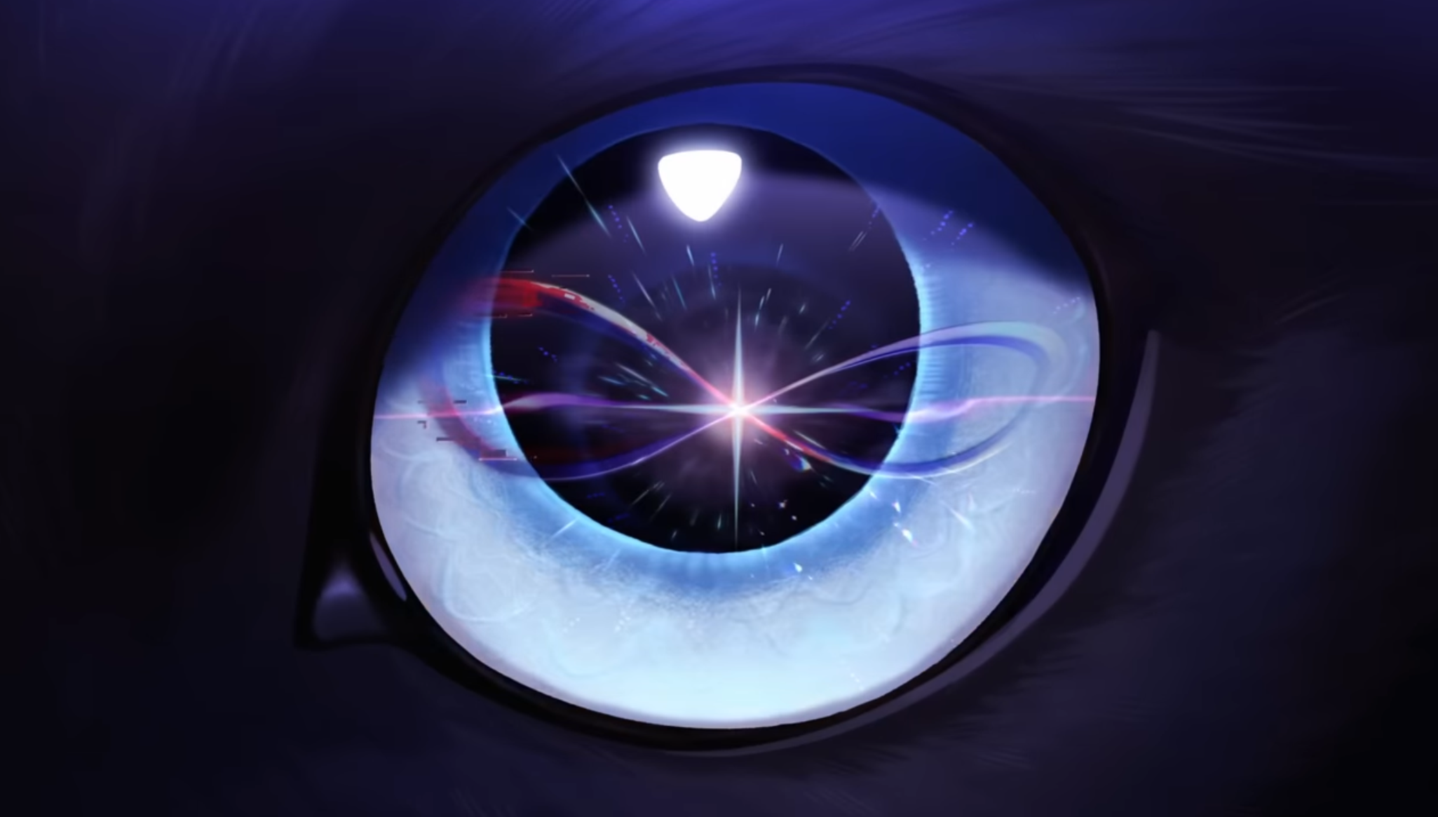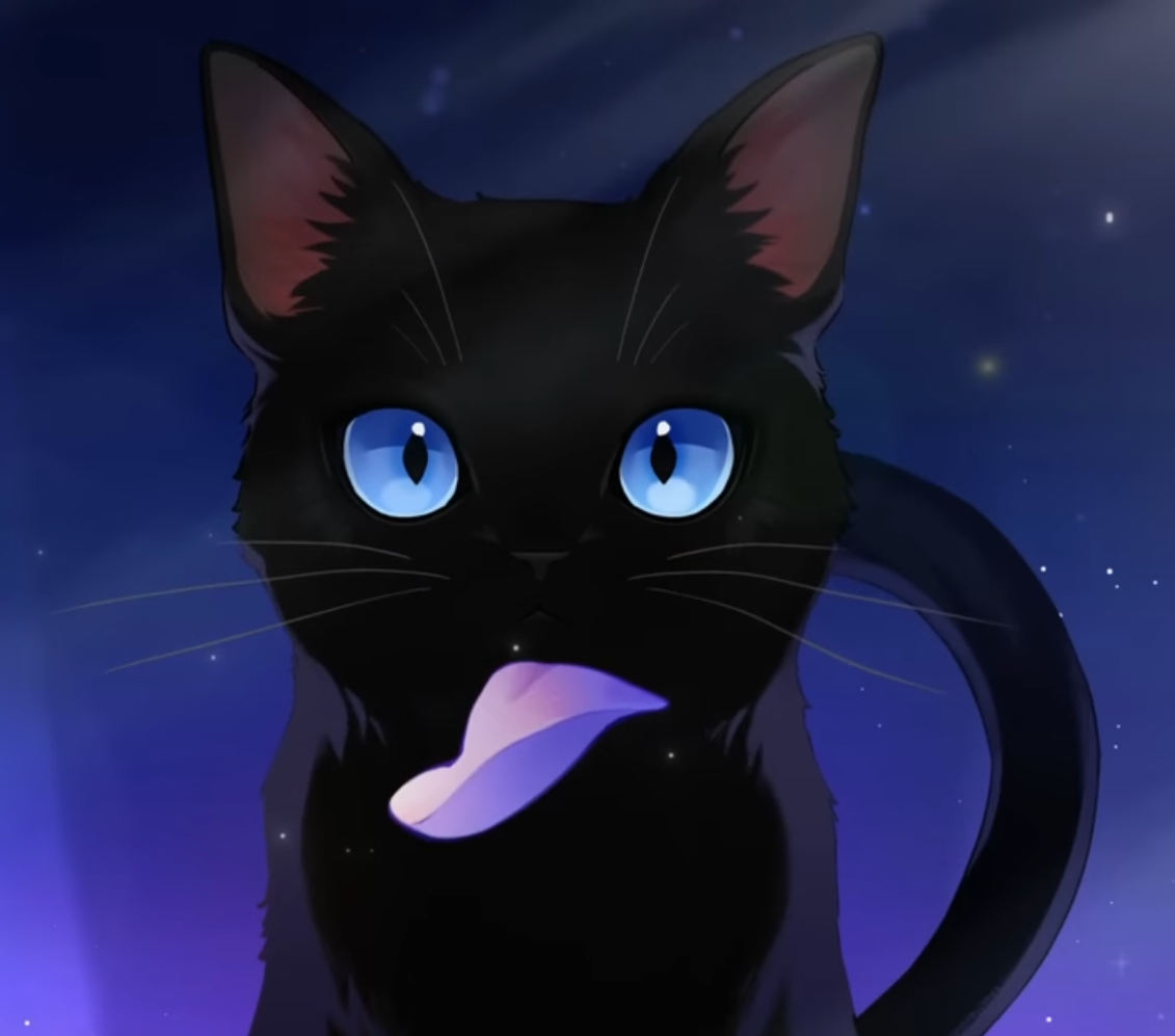 看起來平常是黃瞳黑貓 可能涉及預知未來的時候變成藍瞳?
