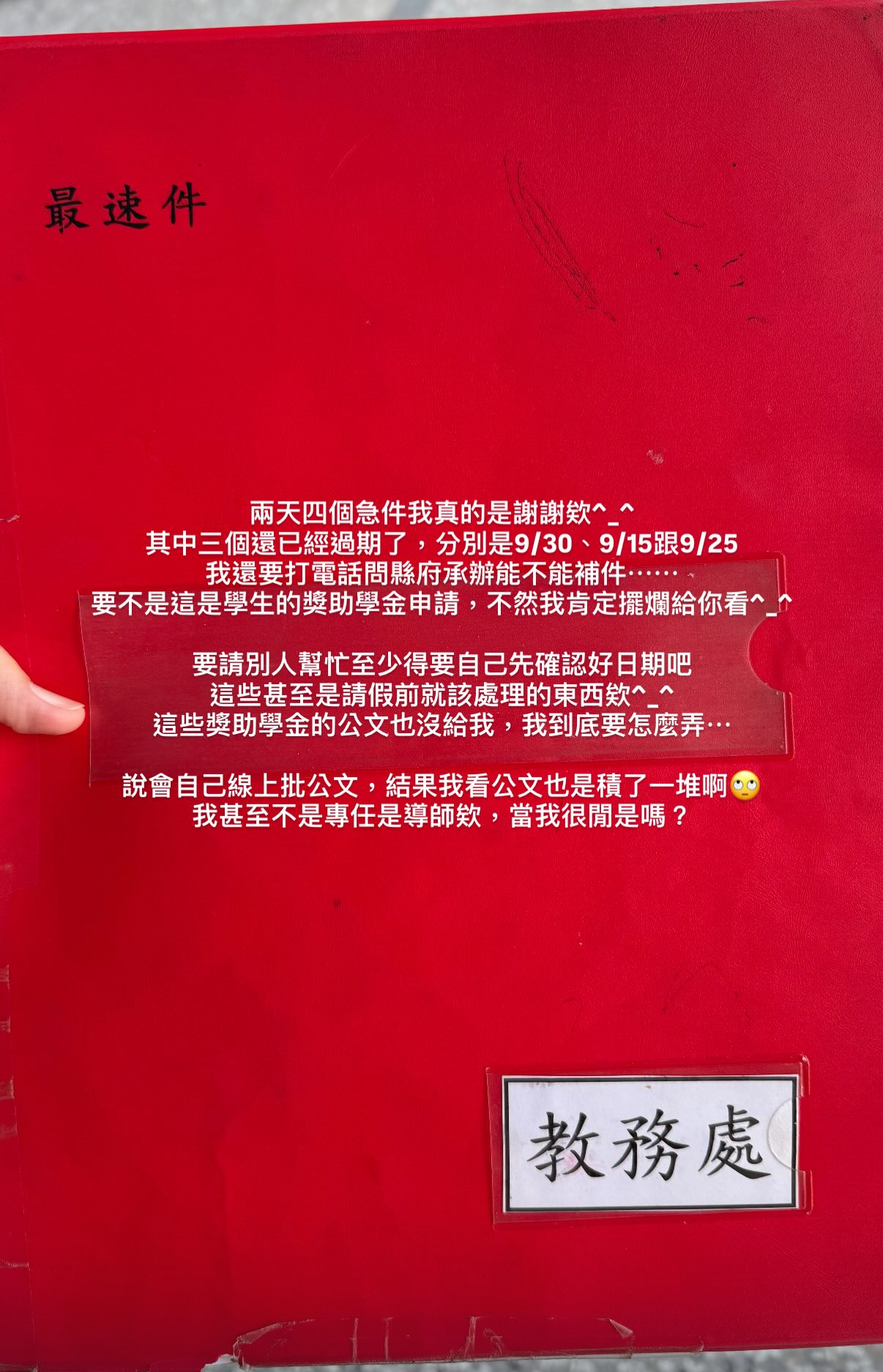 但是要我在我們學校當行政真的是謝謝不用再聯絡,要當行政也是要看處室氛圍的!!還有主管到底罩不罩⋯⋯