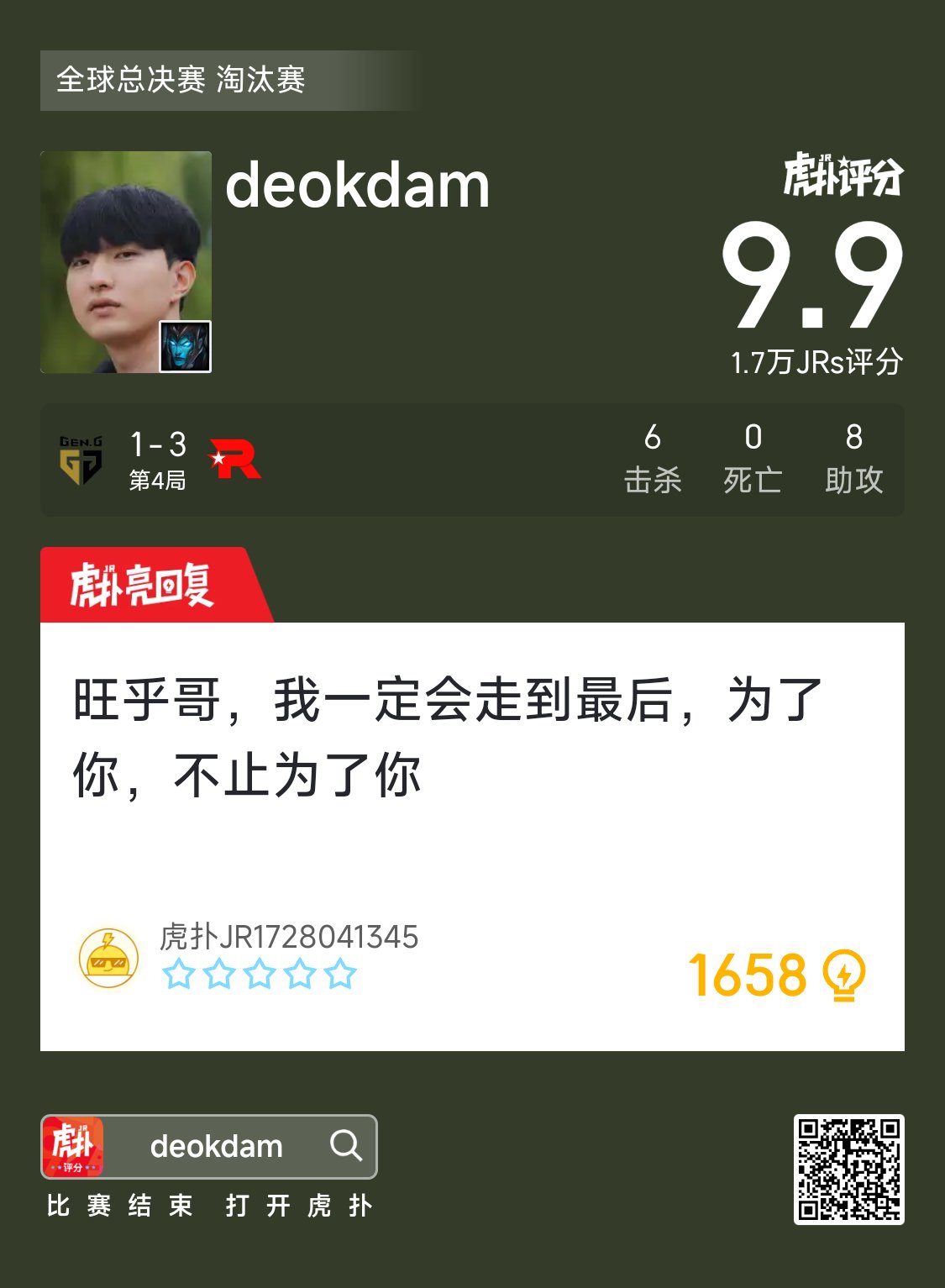 「這隻嗎…準備開車!」ZOD驚呼,坐立難安的JR聽完拉下拉鍊,低語「我與CFO並肩作戰…」說完他深掘深入,猛襲輸出,最後翻山收尾,無處遁逃的ZOD,只能在八強執念下狠狠操作…