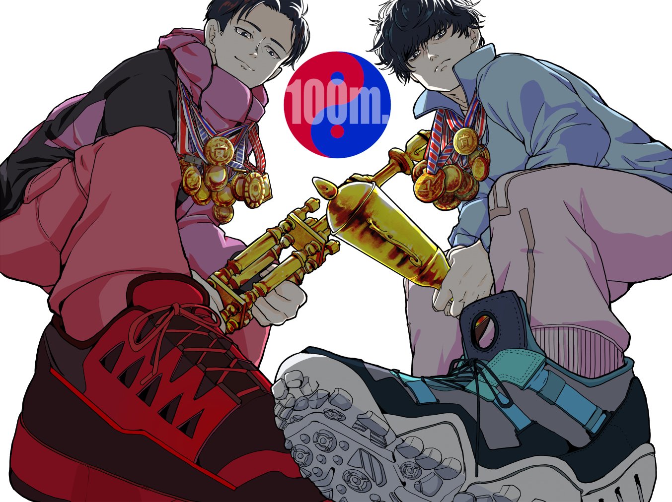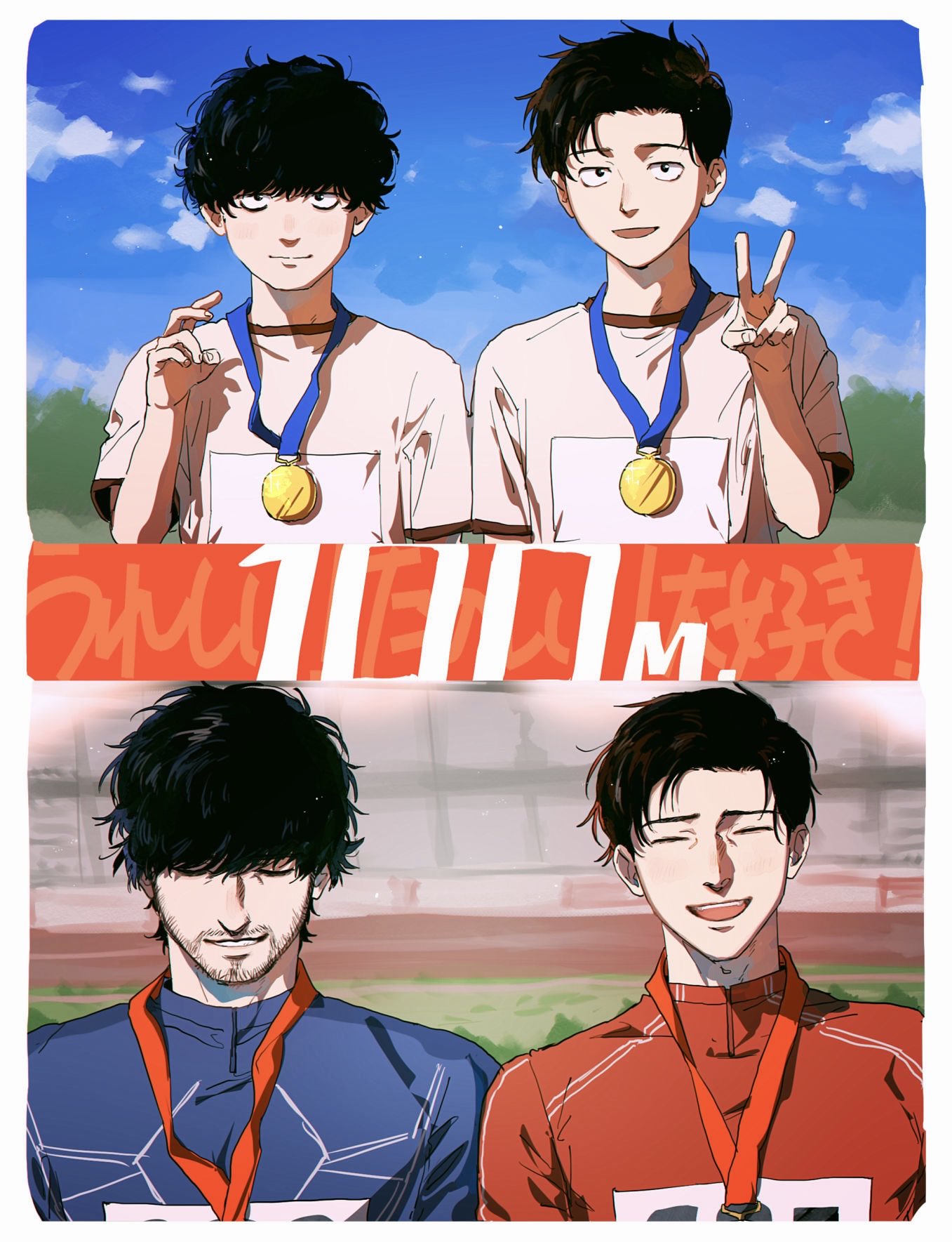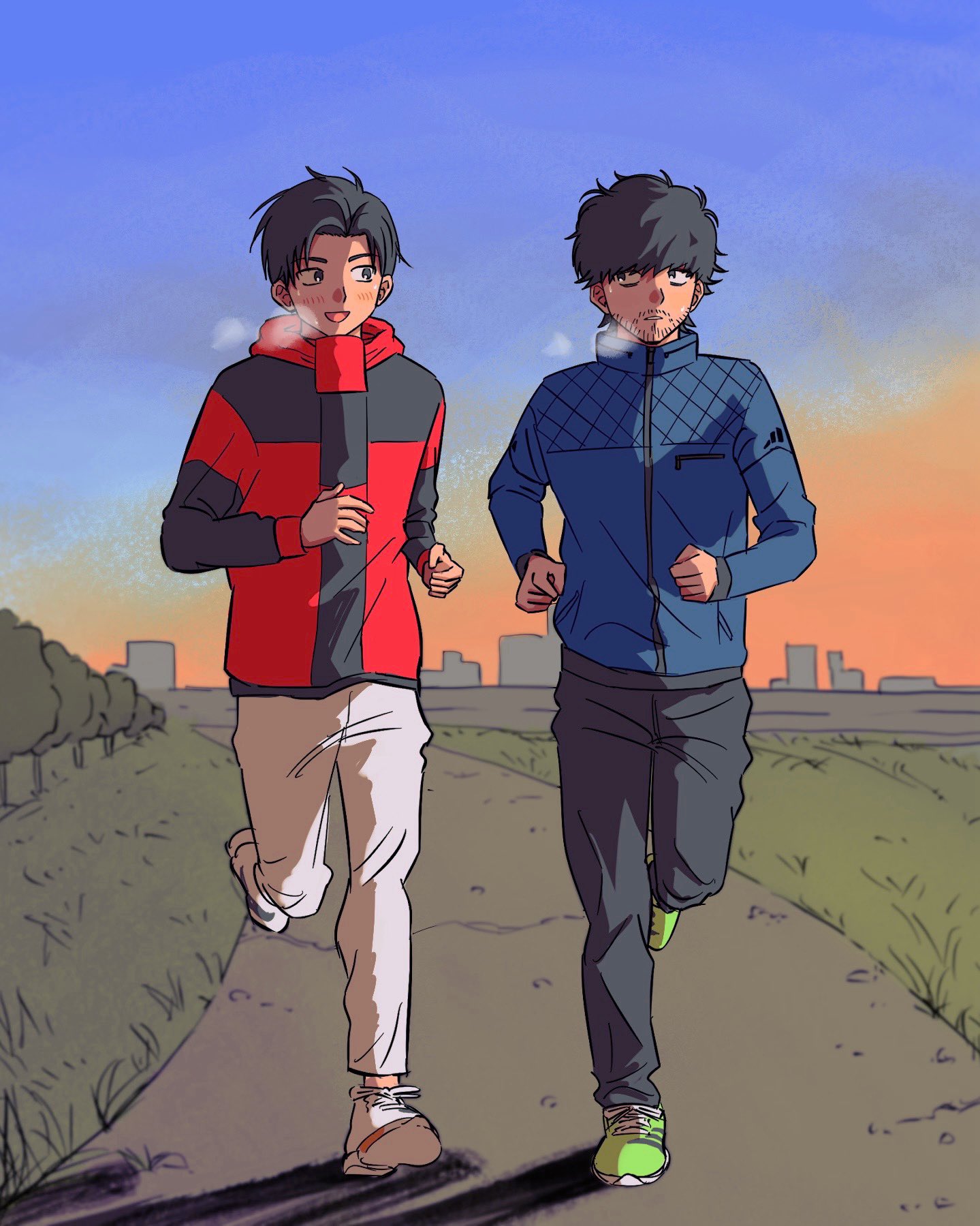 一直在想沒受傷的情況下,兩人間到底是誰會先引退🤔個人覺得是小宮,因為劇中不只一次提到小宮的姿勢很胡來,跟堪稱田徑模範生的トガシ相比,他的跑姿應該蠻亂七八糟的,但鑑於肉體夠健壯所以速度催的上去(毫無根據)。我猜小宮應該跟大谷一樣屬於只能欣賞不能模仿的類型,而這樣的跑法多少會對身體造成傷害吧?所以我覺得他會先トガシ一步引退。不過在日本選手權過後トガシ一定會時常跟他一起跑步,發現他的姿勢可能傷到肌肉之後就會出言提醒,於是小宮就這樣獲得了一名貼身訓練員(