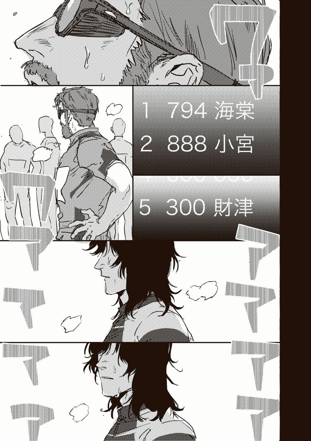 「跑法變了呢。」哪裡變了?步伐的寬度、擺手的幅度、姿勢還是起步?トガシ其實心知肚明,小宮指的並非是表面上的東西,而是更為深層也更為基礎的「不能輸的覺悟」。對小宮而言,改寫紀錄的前提便是跑在第一,倘若連這都做不到,那就更不用提要超越財津寫下的紀錄了。他清楚トガシ跟自己的目標或許不盡相同,但他以為「不能輸」一直是兩人間共同的信念。