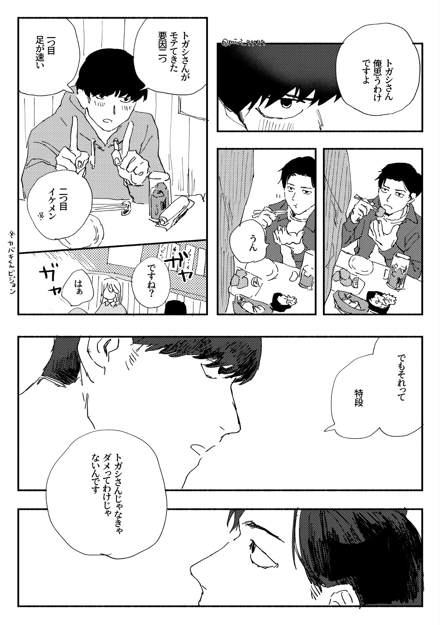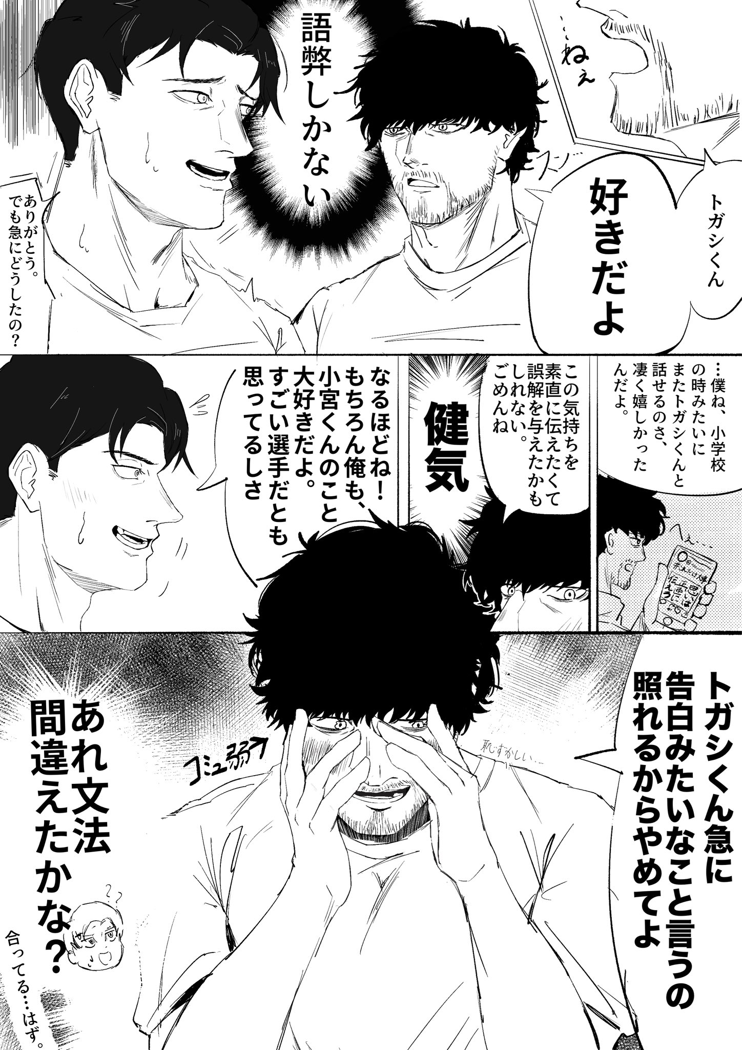 「小宮くんと付き合ってからようやくわかった。」トガシ不好意思的搔了搔下巴,明亮又圓潤的瞳孔裡硬著小宮僵硬的臉。